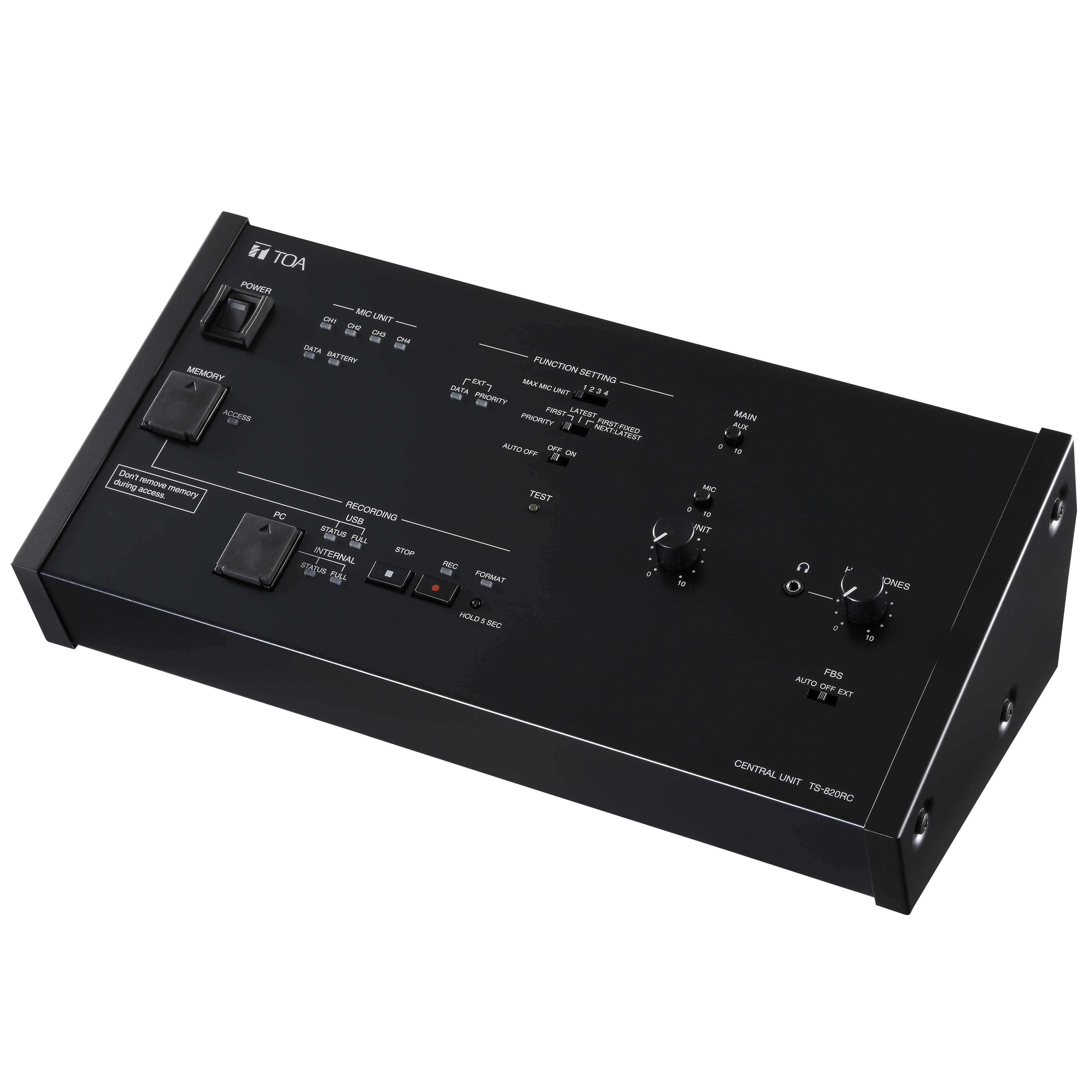 The TOA TS-820RC is a Central Unit of the TOA wireless Infrared Conference System. This model includes an MP3 recorder to record all conference proceedings to a USB drive or internal memory.