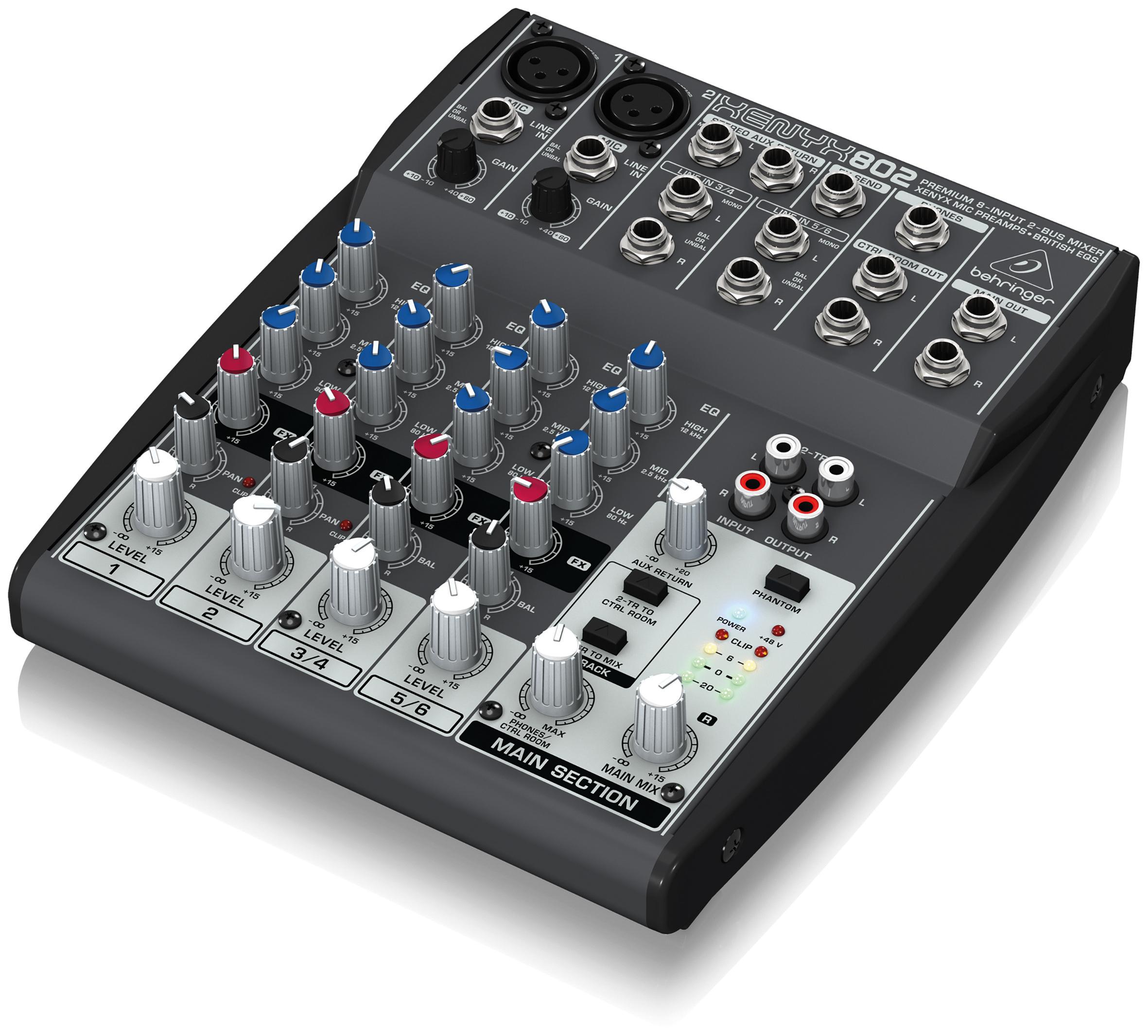 The Behringer Xenyx802 is a superb compact audio mixer with 8 inputs.