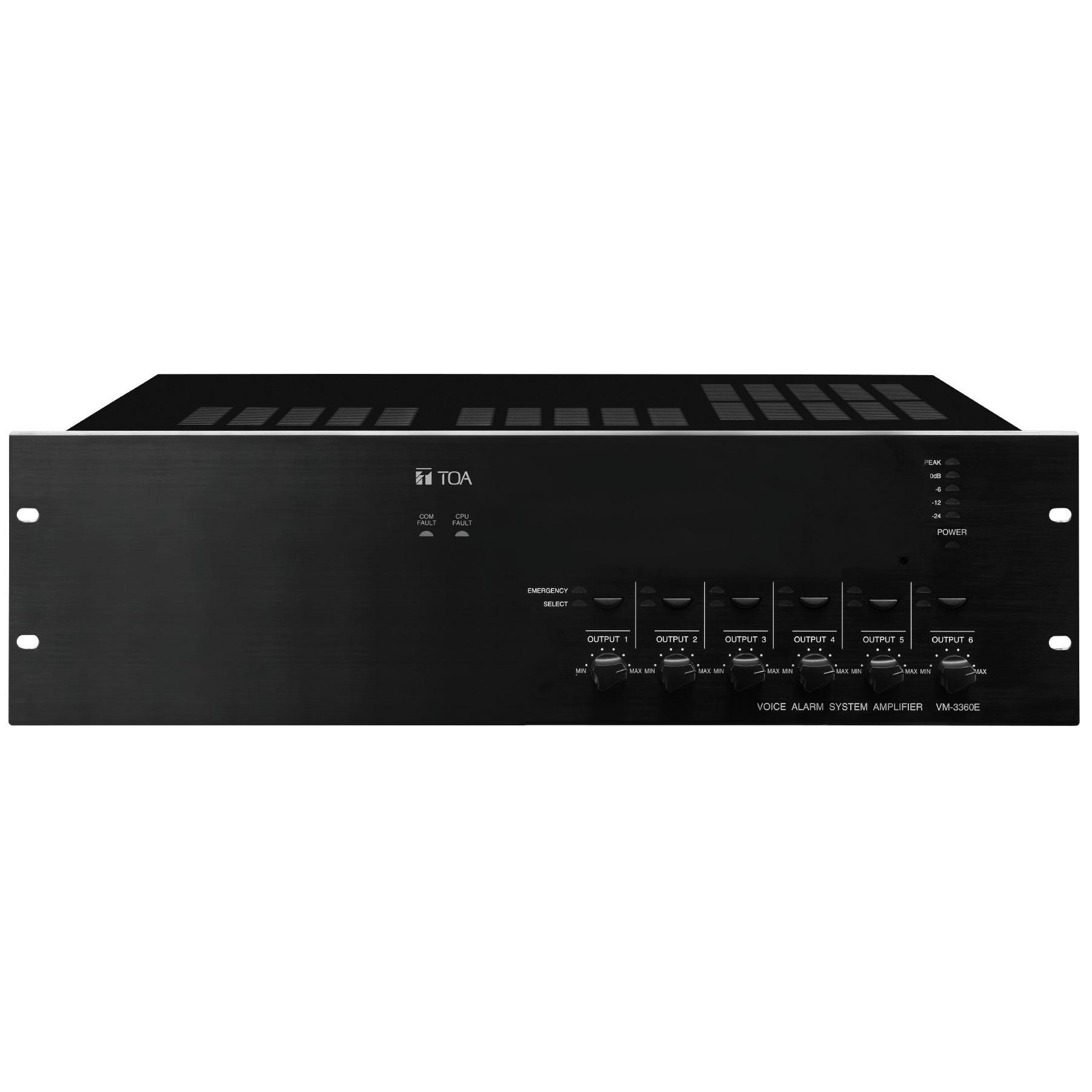 The TOA VM-3360E is a microprocessor-controlled extension amplifier for the TOA VM-3000 series voice alarm system management amplifiers.