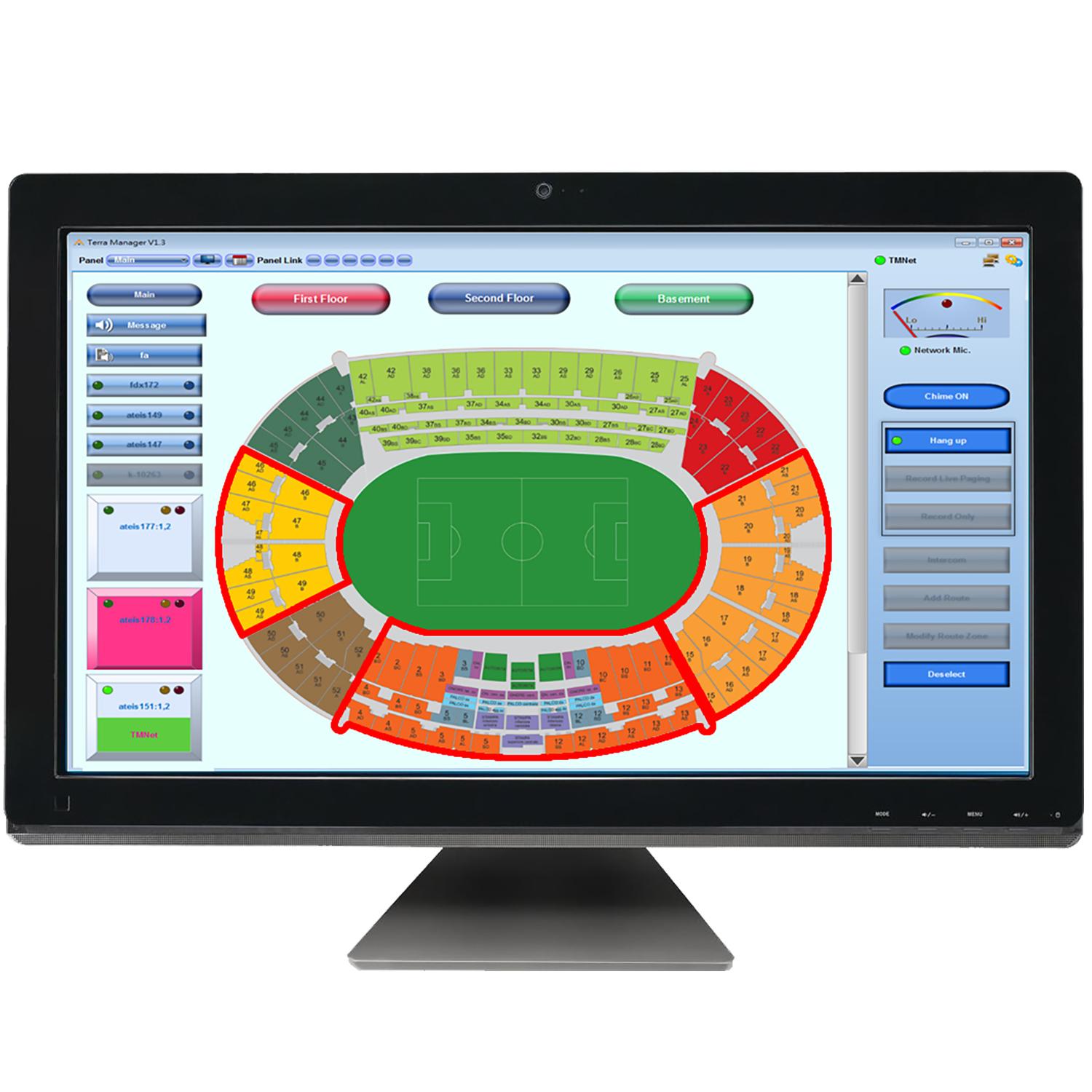 TerraManager can perform call-paging (Unicast/Multicast/ Broadcast), full duplex intercom, music streaming, background music routing, message playing, recording, event, bell scheduling, device I/O monitoring, parameter presets, TTS SVE (Text To Speech - Synthetic Voice Engine), volume control (3rd party) and other numerous control functions.