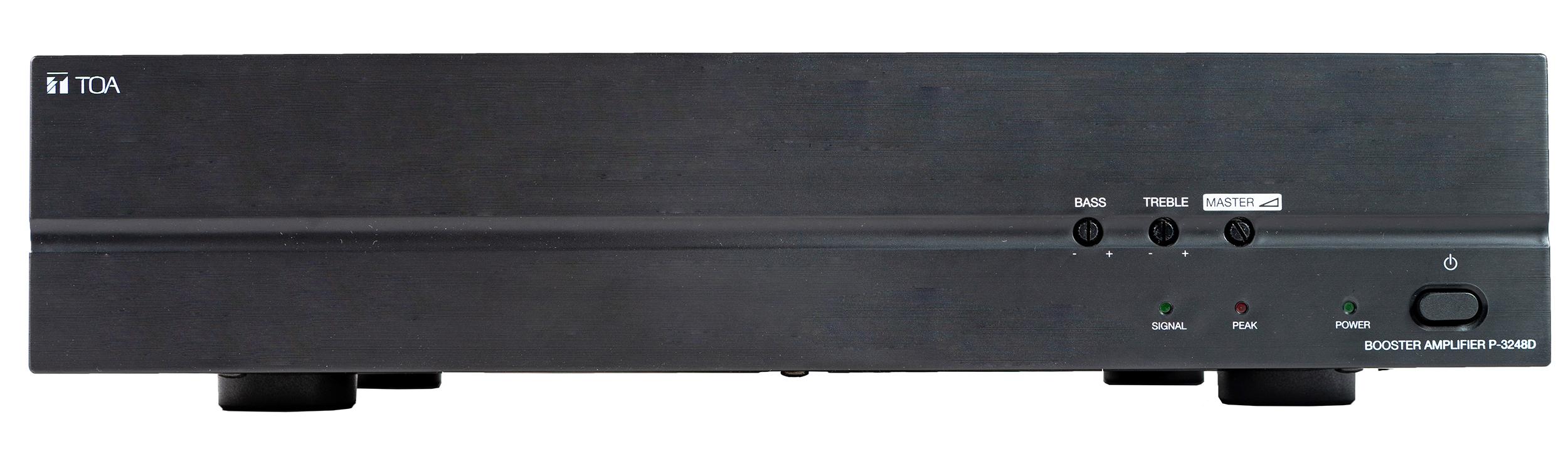 The TOA P-3248D is a highly efficient class D power amplifier with a 480 watt output, compatible with 100 volt line or low impedance systems (4 ohms).