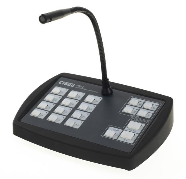 The Cloud Electronics PM12 is a 12 Zone paging microphone for use with the Cloud Electronics audio mixers as well as non-Cloud products.