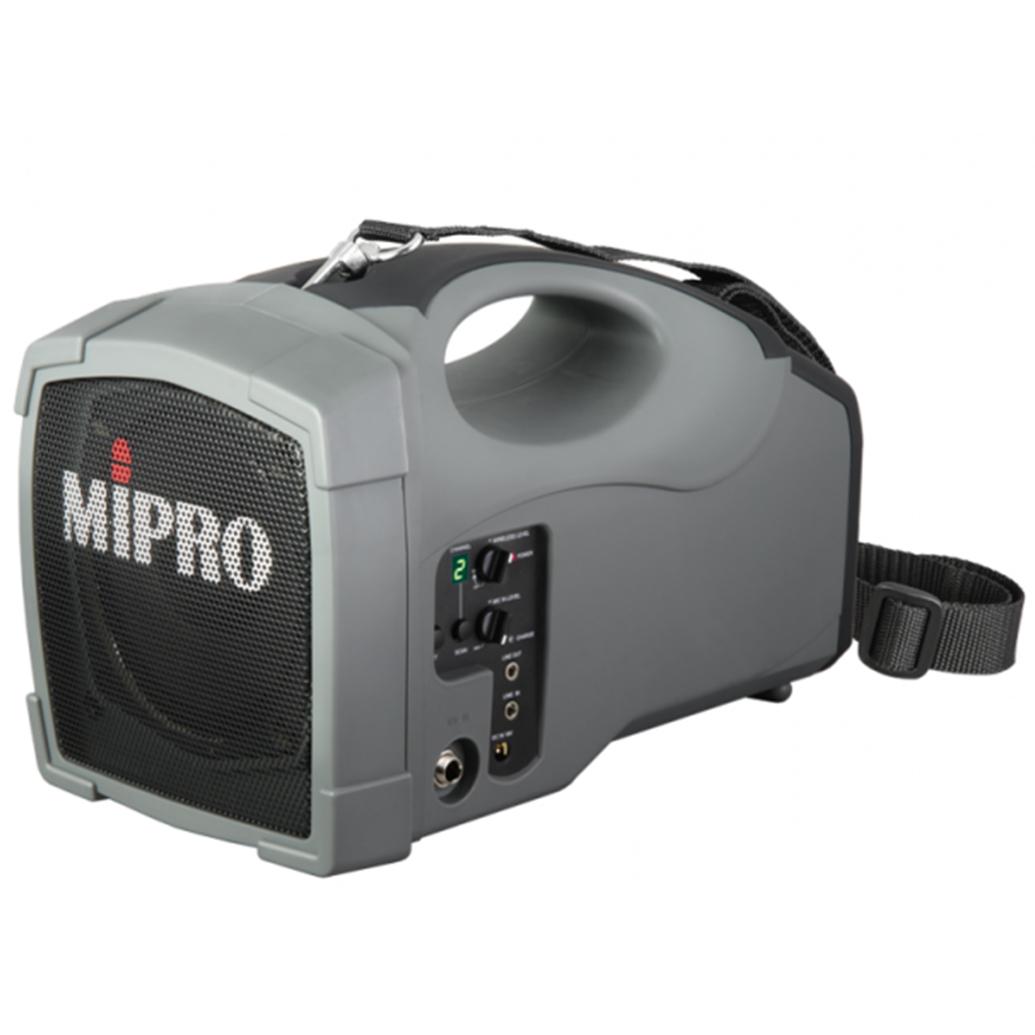 The Mipro MA-101G portable PA system provides a maximum output power of 45 Watts and has a built-in 5.8GHz radio mic receiver for use with the Mipro hand held radio mic or bodypack transmitter in conjunction with a tie clip or headset mic. 5.8GHz, Licence free.