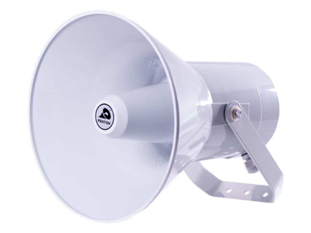 The Penton PH30/T weatherproof, lightweight plastic re-entrant horn is rated at 30 Watts, 100 Volt line.