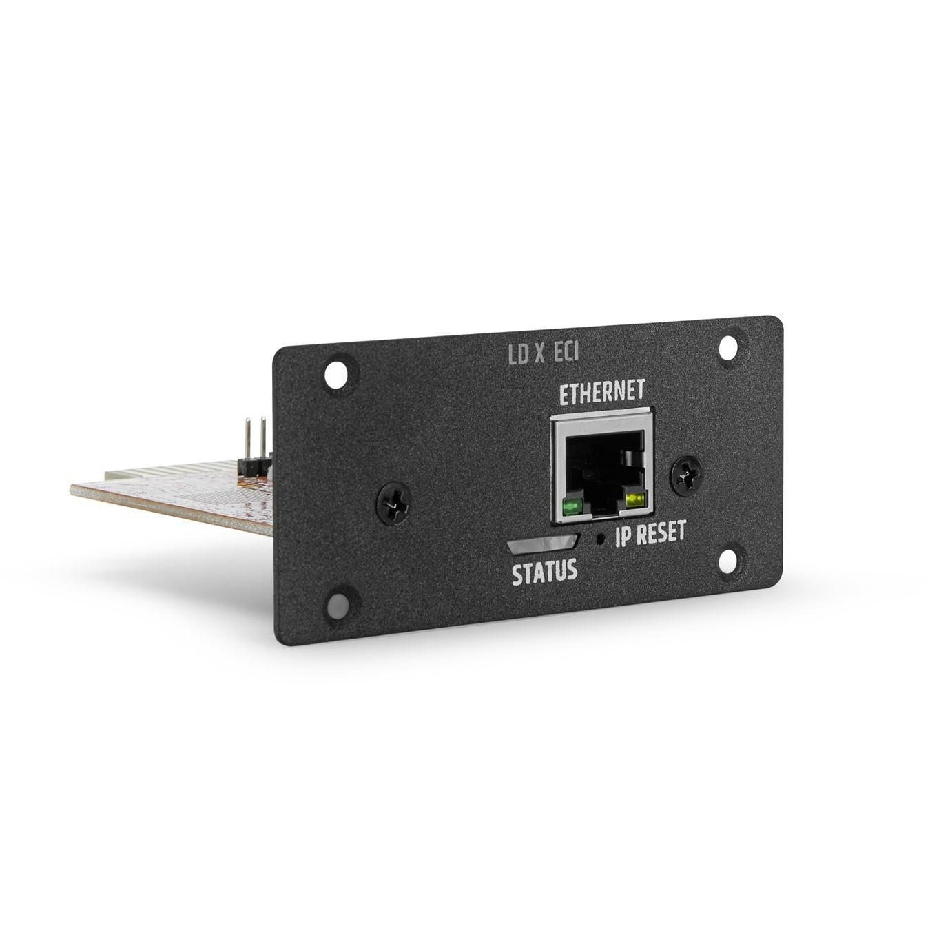 The LD Systems X-ECI Ethernet Control interface card extends the control options of the IPA DSP installation power amplifiers by enabling them to be configured and controlled remotely, over a network, in conjunction with LD Systems QUESTRA®* software.