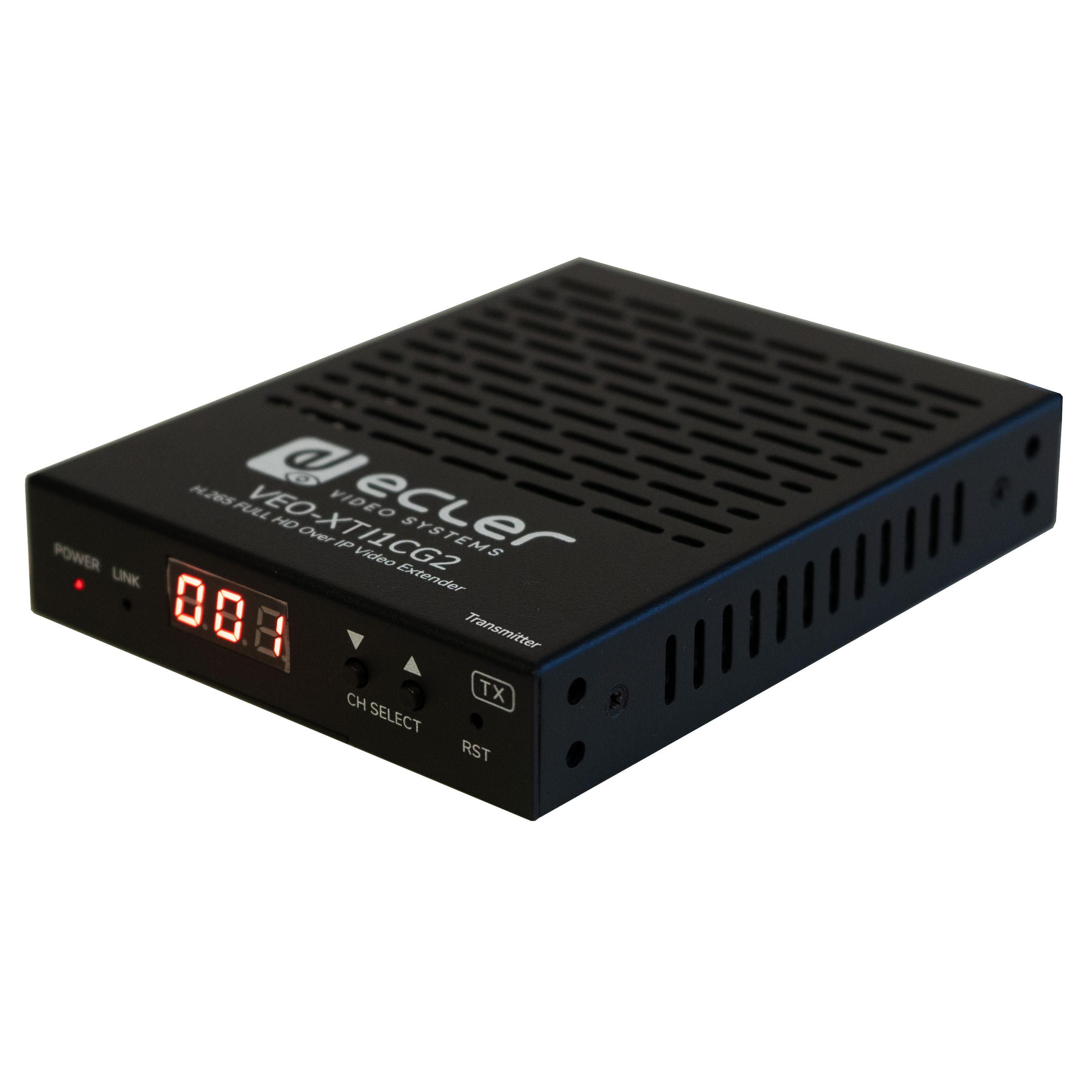 The Ecler VEO-XTI1CG2 VoIP transmitter works in conjunction with the VEO-XRI1CG2 receiver (available separately) and together they are a H.265 / H.264 over IP set of extenders that allow for HDMI distribution over 1Gb Ethernet networks with up to 1080p@60Hz video support.