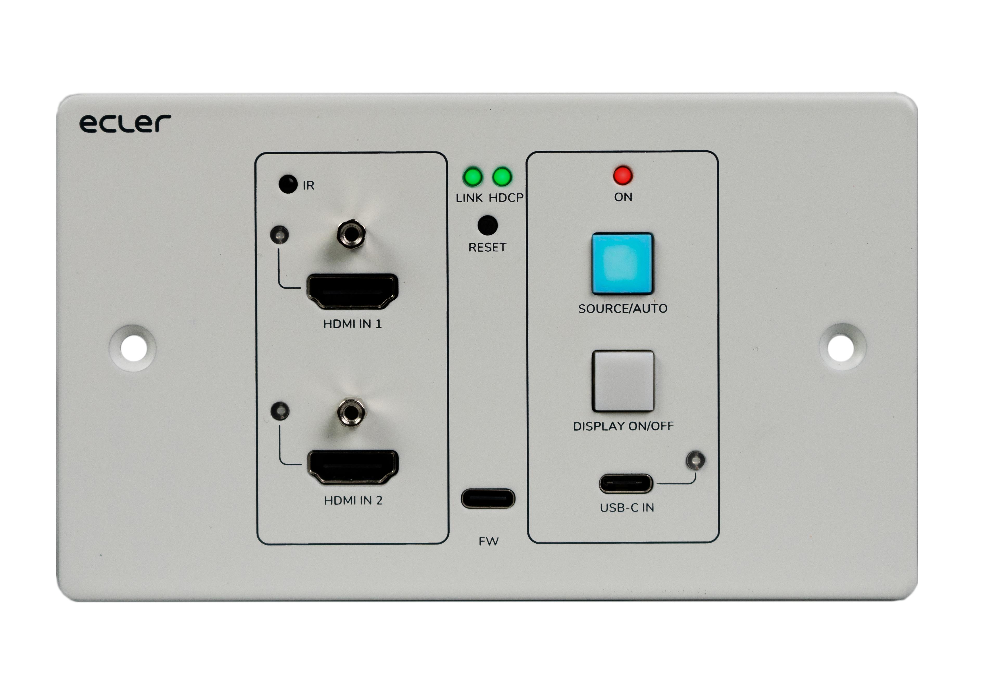 - 4K HDMI wall-plate transmitter with 2 HDMI IN, and 1 USB-C IN