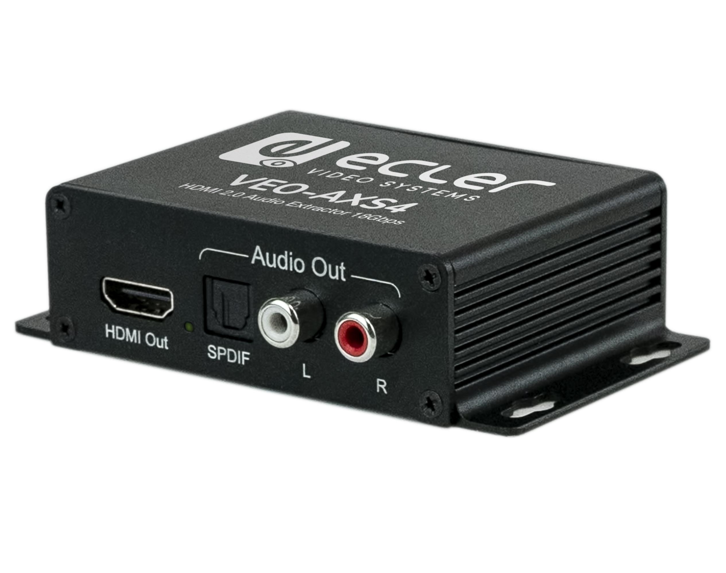 The Ecler VEO-AXS4 HDMI audio extractor facilitates de-embedding of audio from a HDMI signal up 4K.