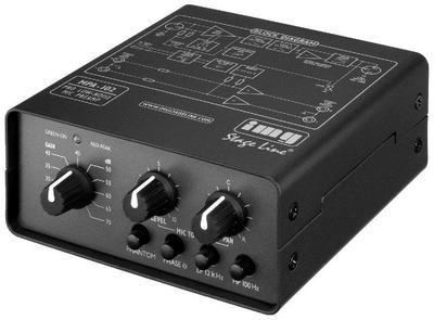 The IMG Stageline MPA-102 single channel low-noise microphone pre-amplifier is suitable for use on mains power or battery operation.