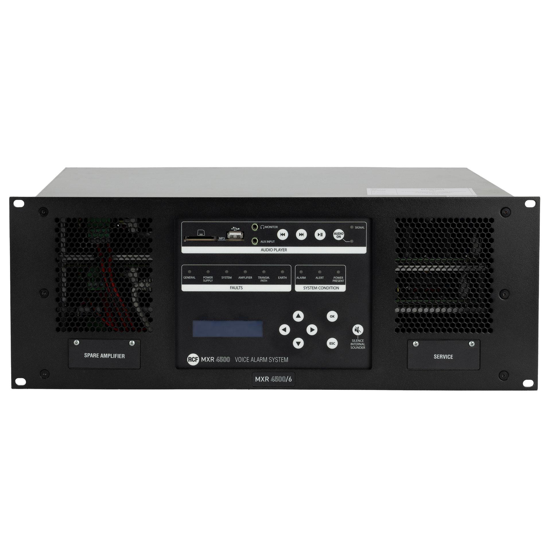 The RCF MXR 4500/6 is a 6 channel voice evacuation master unit from the RCF DXT4000 system, fully EN54 compliant. On-board DSP enables equalization for optimum voice intelligibility and background music performance.