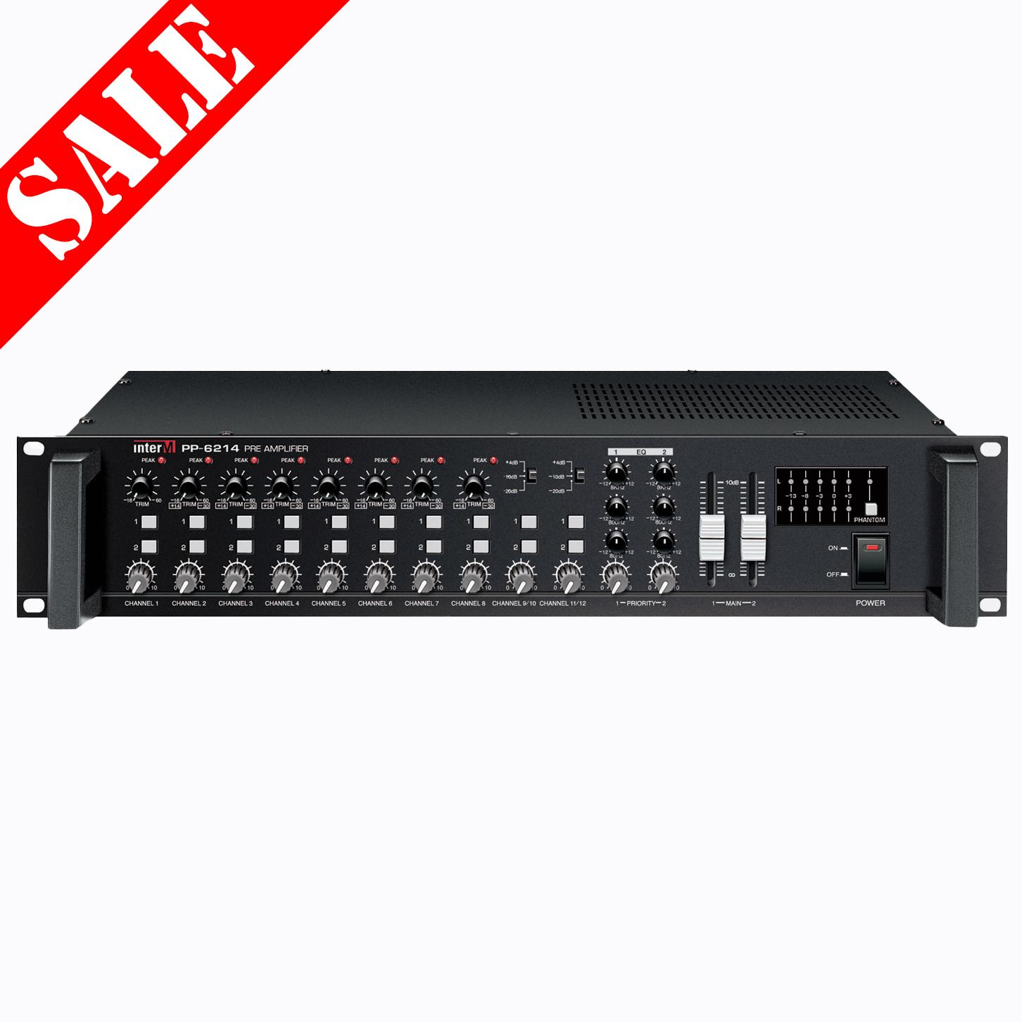 The Inter-M PP-6214 is an AC or DC powered mic/line mixer for use in conference and sound installations.