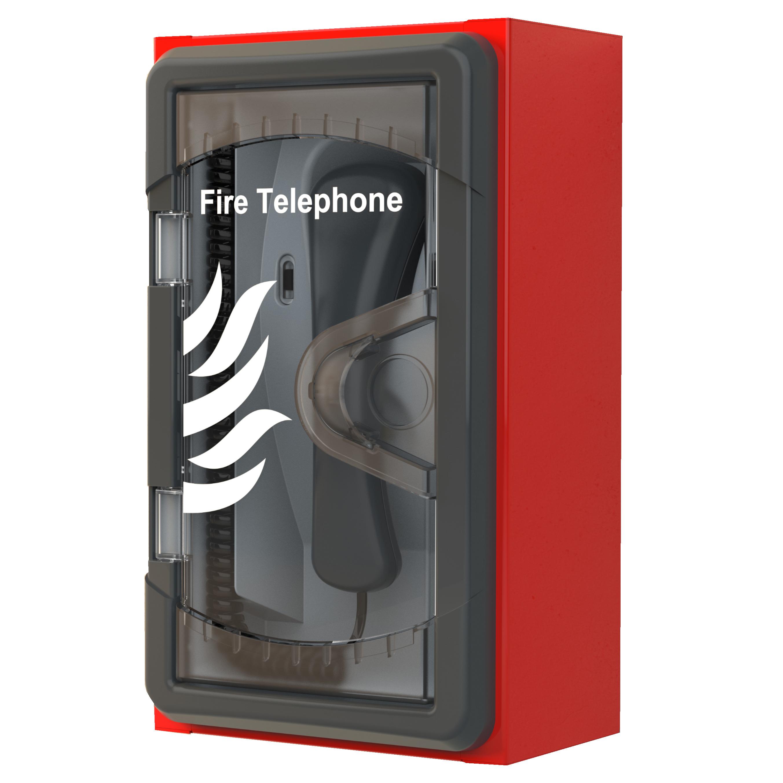 Type A, red fire telephone outstation with ‘lift key’ lockable plastic door.