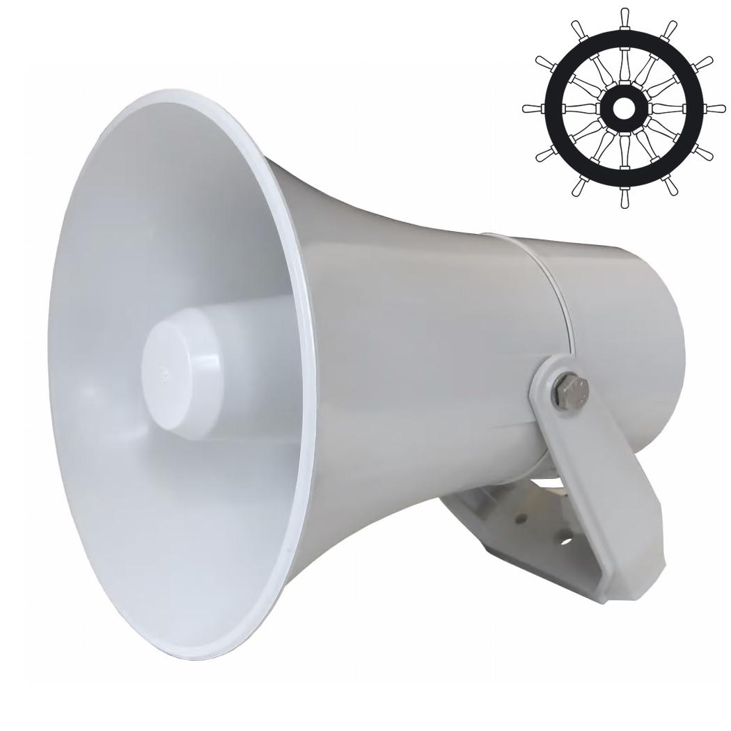 The DNH HP-15T-MED is a 15 watt plastic horn loudspeaker suitable for 100 volt line public address sound systems and supplied complete with a stainless steel mounting bracket*.