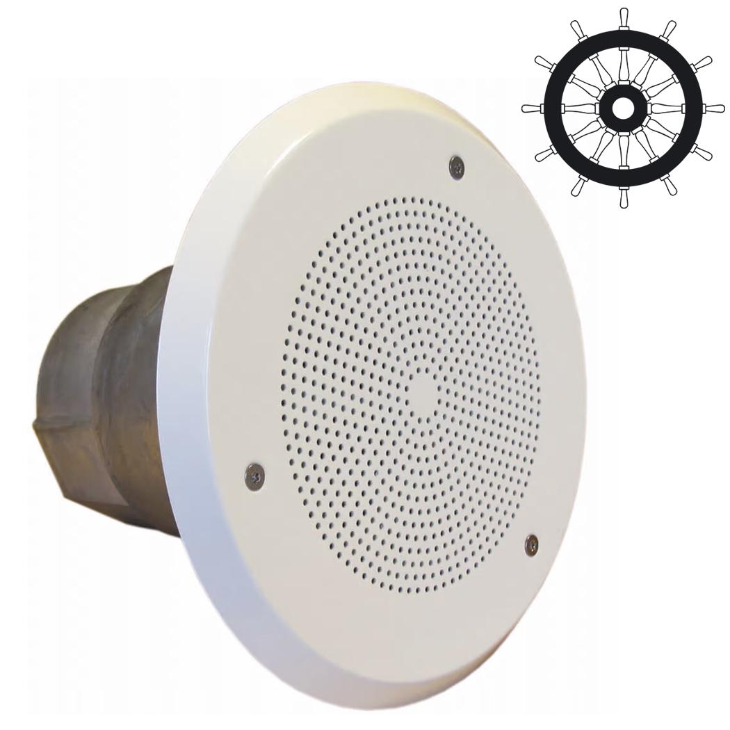 The DNH BA-56EExeNT-MED is an MED compliant & EX rated aluminium ceiling speaker fitted with a 5" driver and rated at 6 watts RMS for 100 Volt line loudspeaker circuits.