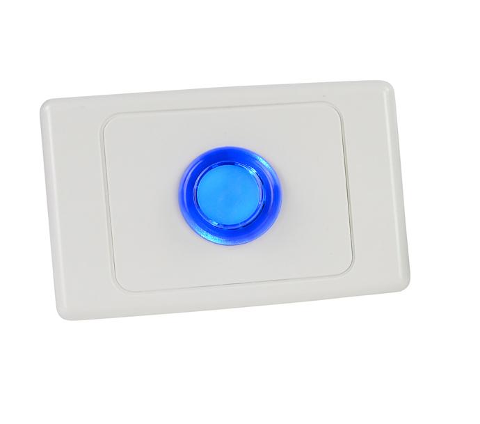 The highly visible blue button wall plate is connected to the Aerolink using CAT 6 cable.