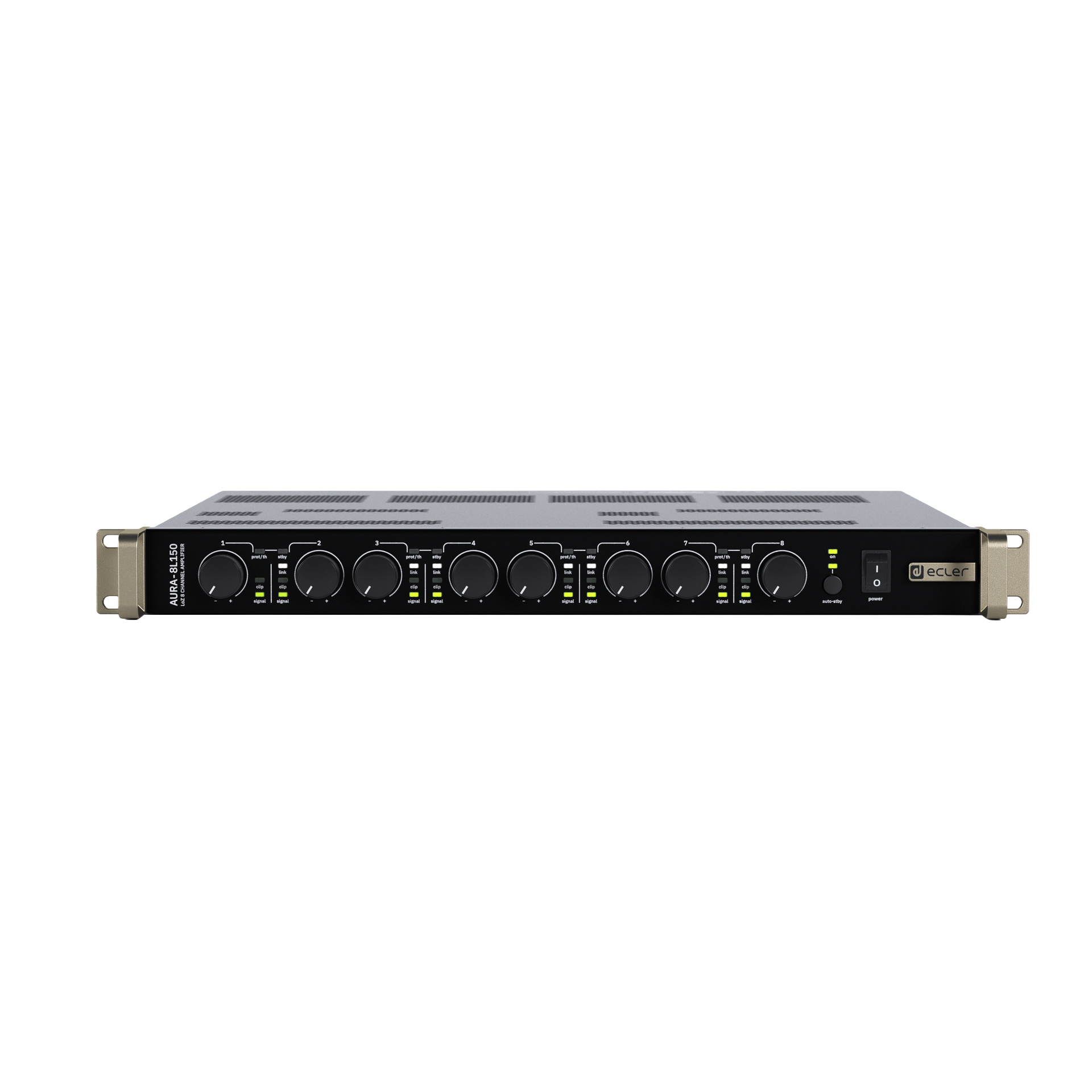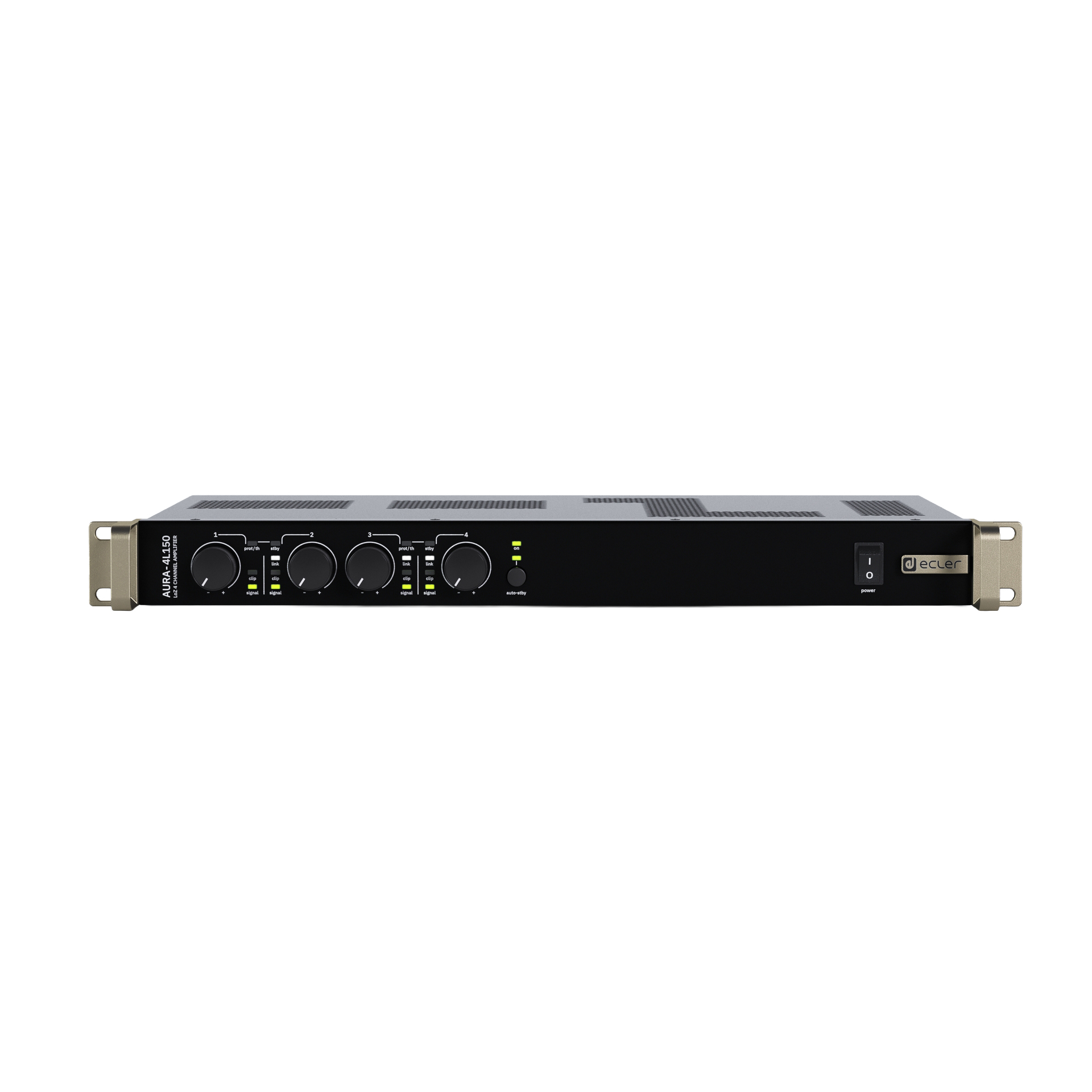 The Ecler AURA-2L150 , 4L150 and 8L150 are two, four or eight channel, class D, high efficiency power amplifiers with an output of 150 W RMS per channel at 4 Ω. (75 W @ 8 Ω).