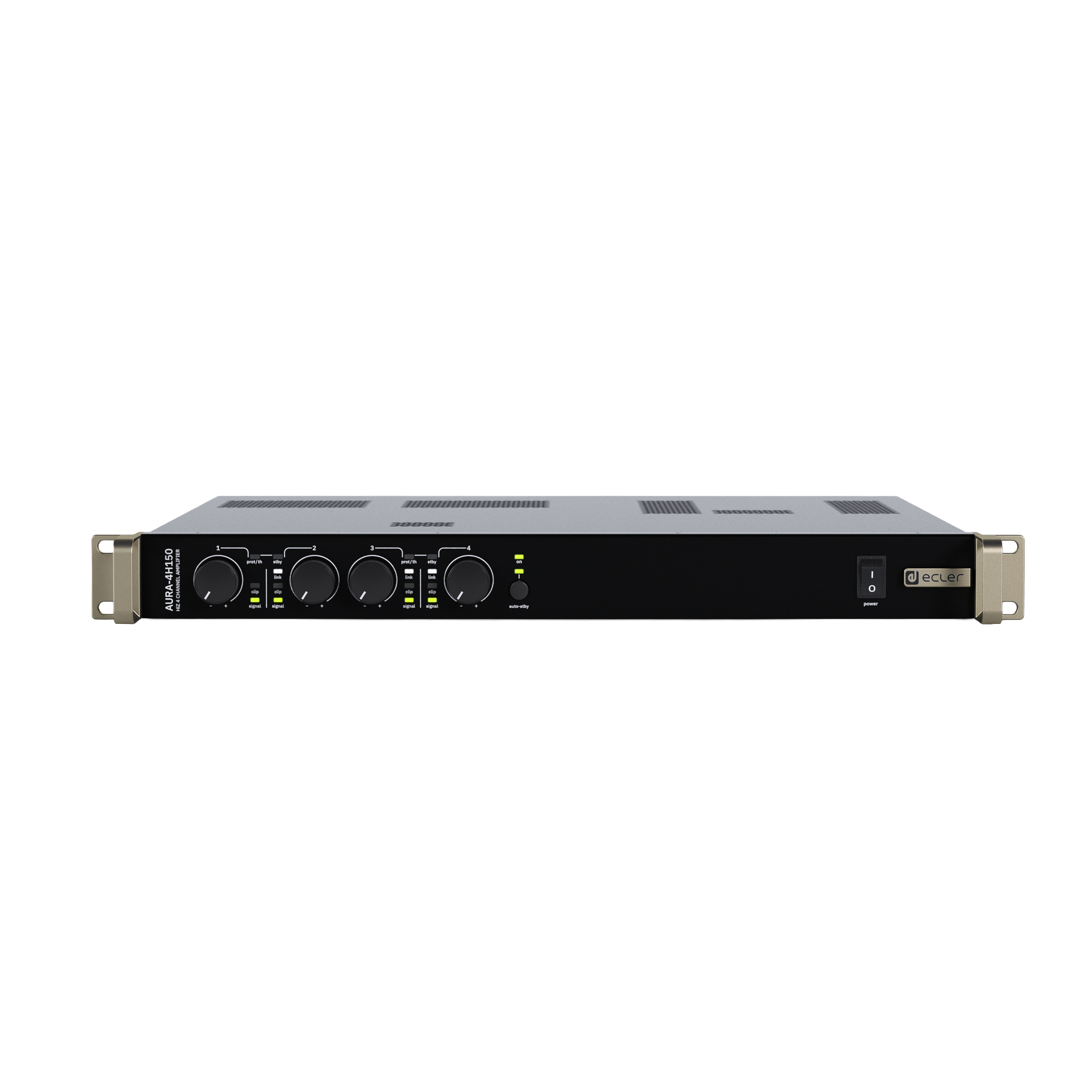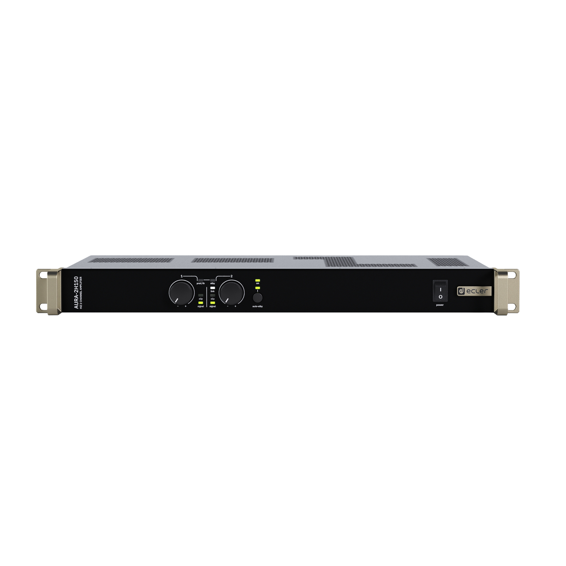 The Ecler AURA-2H150 and 4H150 are two or four channel, class D, high efficiency power amplifiers with an output of 150 W RMS per channel at 70/100V.