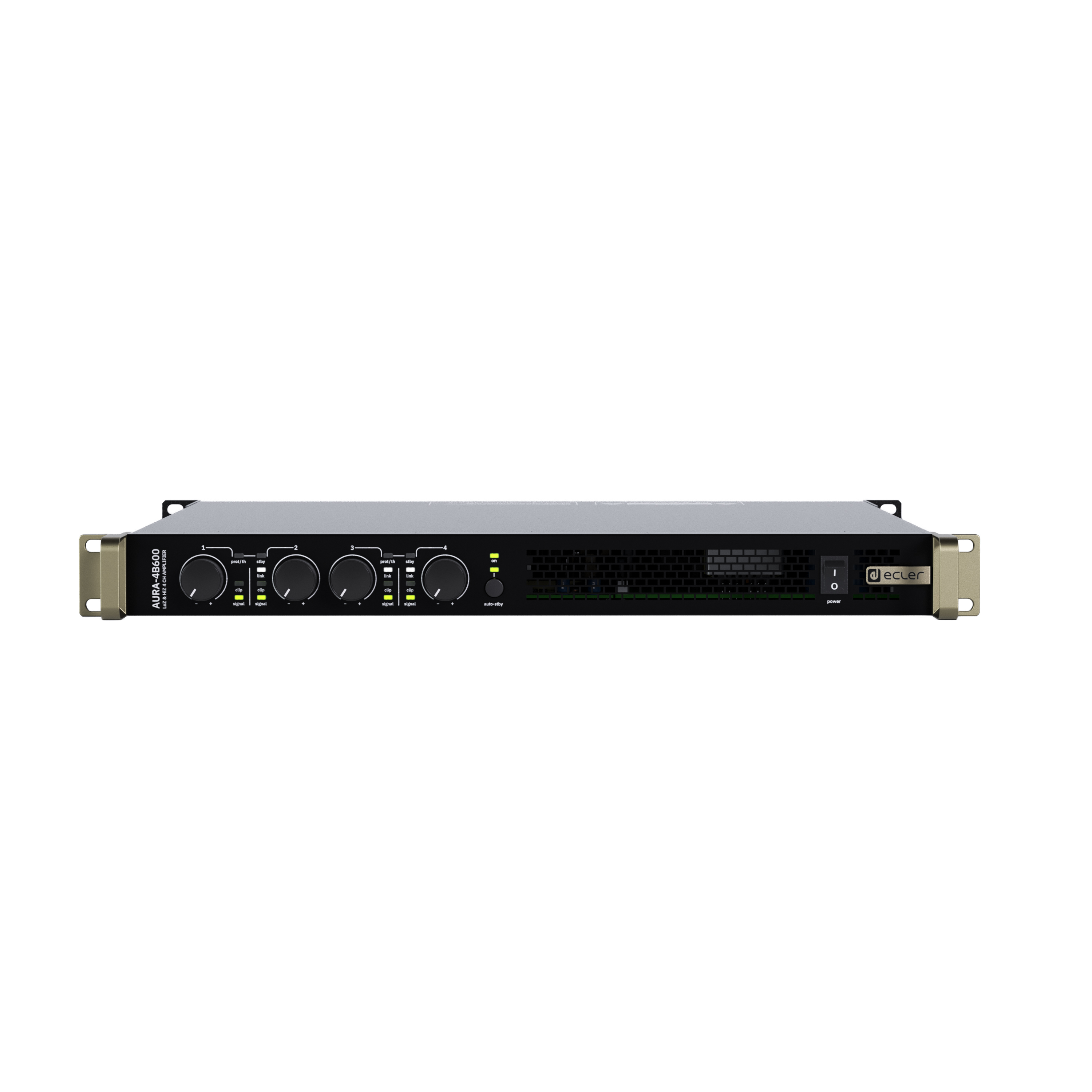 Ecler AURA-4B600: 4 x 600 W RMS @ 4 Ohms or 70/100 Volt line.