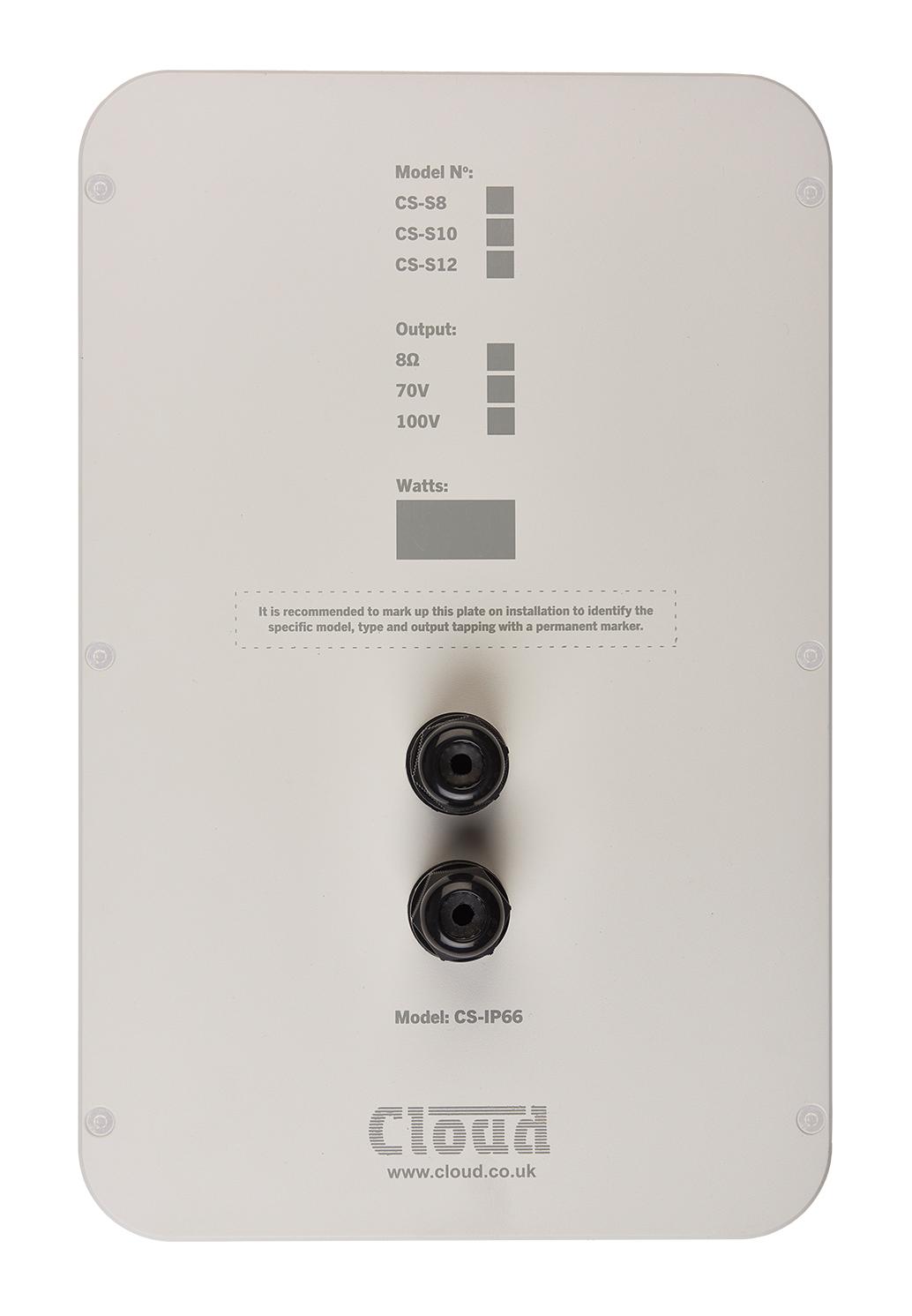 The Cloud Electronics CS-IP66PW is a weatherproof rear cover plate assembly to upgrade the CS-S8, CS-S10 and CS-S12 passive loudspeakers to comply with IP66.