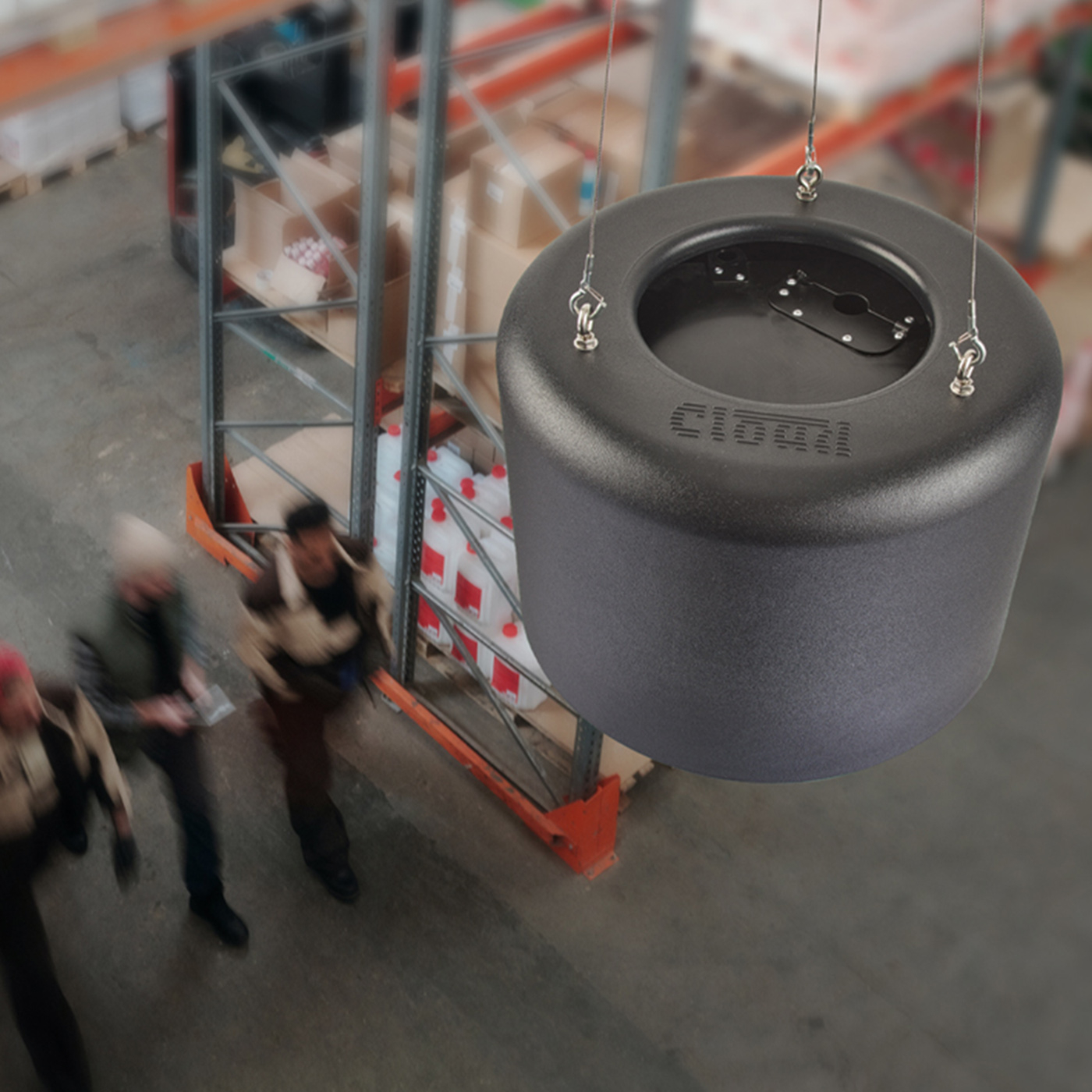 The CS-C speakers are normally flush-fitted into ceilings but using the PC-200W housing allows them to be suspended from a single point fixing, either from a ceiling or from steelwork or cable trays. Alternatively, the adaptable PC200W can be fixed directly to the ceiling via the 3 x M6 recessed threaded inserts.