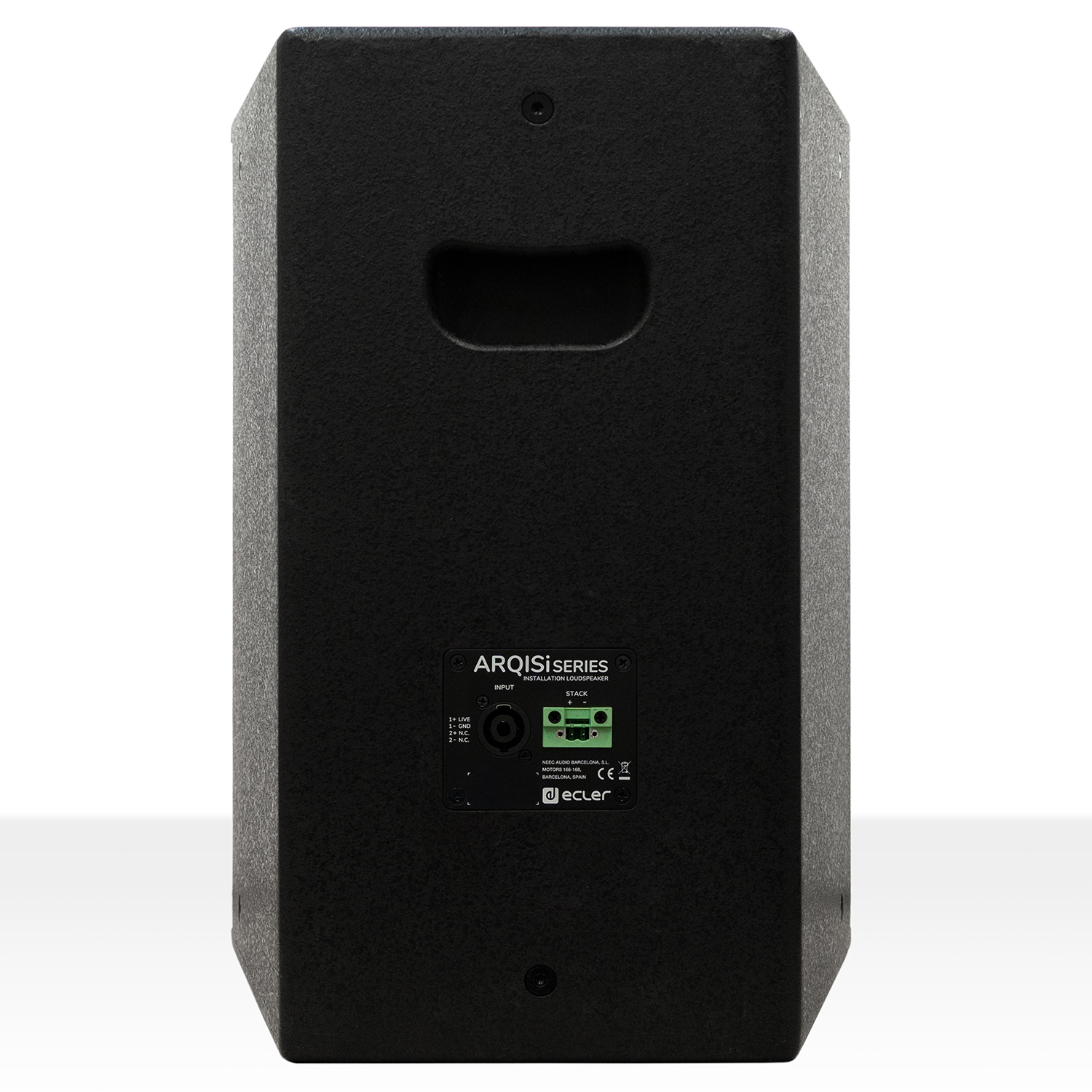 - Double INPUT/STACK connector, Euroblock + Speakon© type, with security attachment screws to avoid accidental disconnection