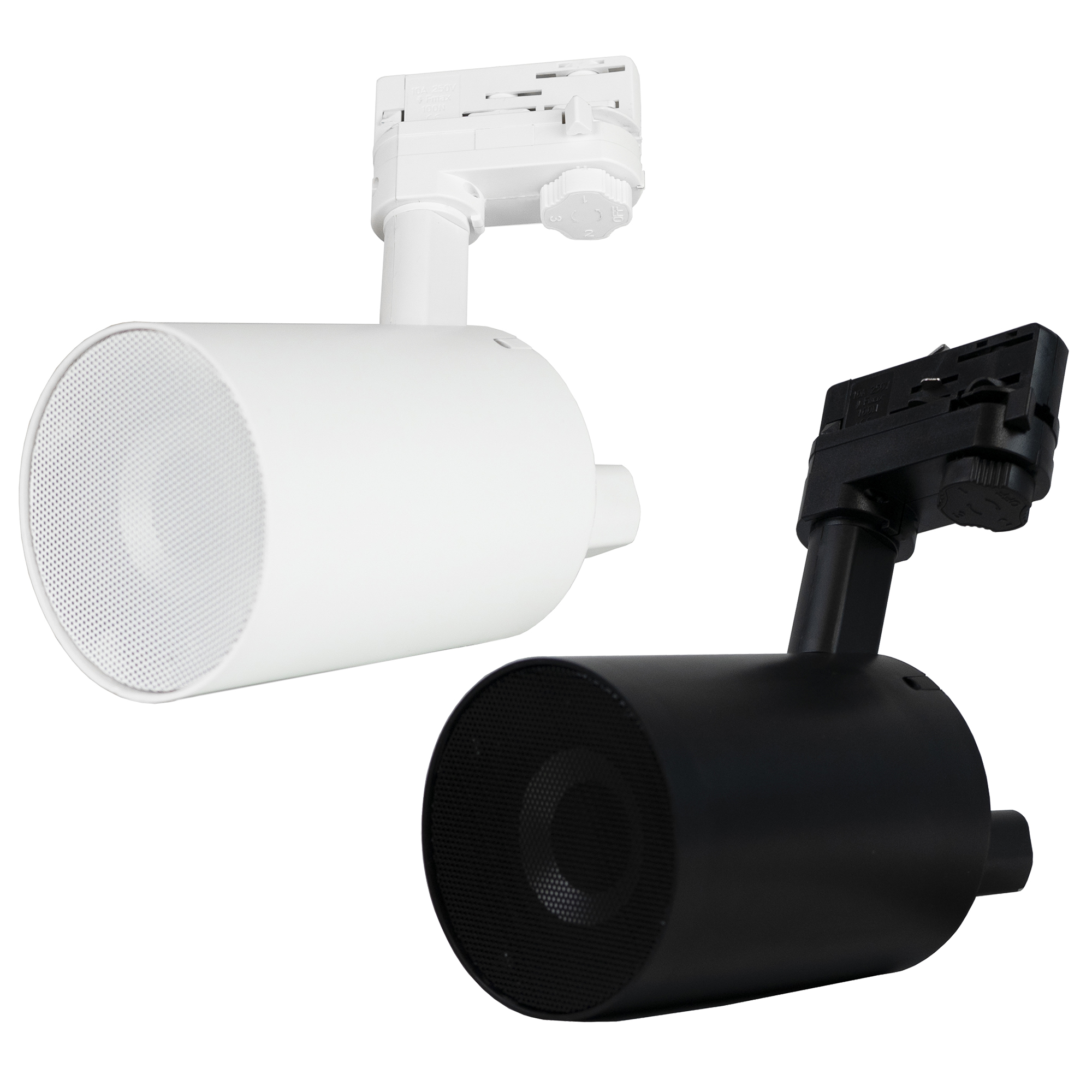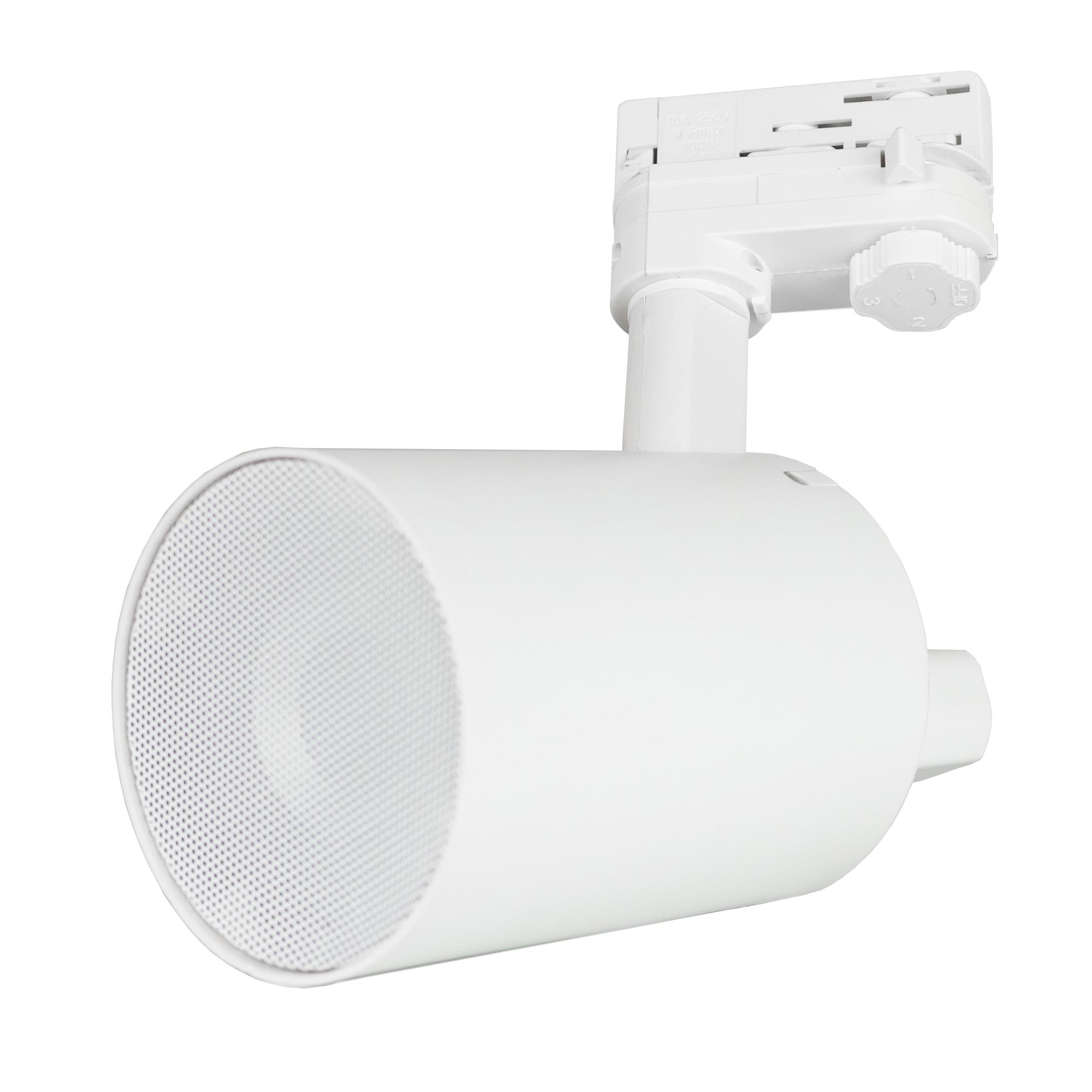 The TUBE loudspeaker is available in either black or white and can be mounted onto and powered from a standard lighting track such as a Global Track Pro or similar.