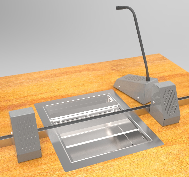 The customer facing speakers are freestanding to suit your installation and the microphone is built in too.