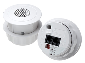 The EAW & EAB emitters are extremely discreet and compact with 1.25” (3.17 cm) drivers. Dip switches on the rear enable the sound masking input to be adjusted by -3dB, -6dB or -9dB to suit the different acoustic conditions within a zone.