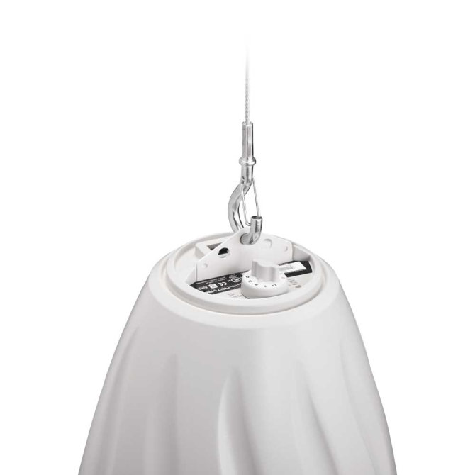 The Soundtube RS400i-WH is a pendant loudspeaker with enhanced bass response, suitable for use indoors and outdoors.