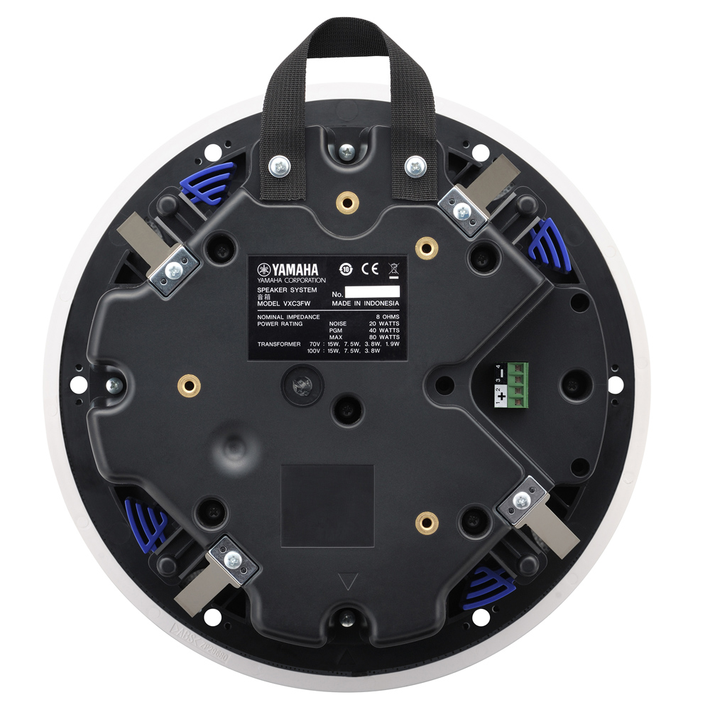 The Yamaha VXC-3FW ceiling speakers feature a newly designed speaker unit, optimally tuned for music playback. 3.5" full range drive unit, program power 40 watts, and compatible with 8 ohm low impedance background music systems as well as high impedance sound systems. Tappings at 15w, 7.5w, 3.8w.