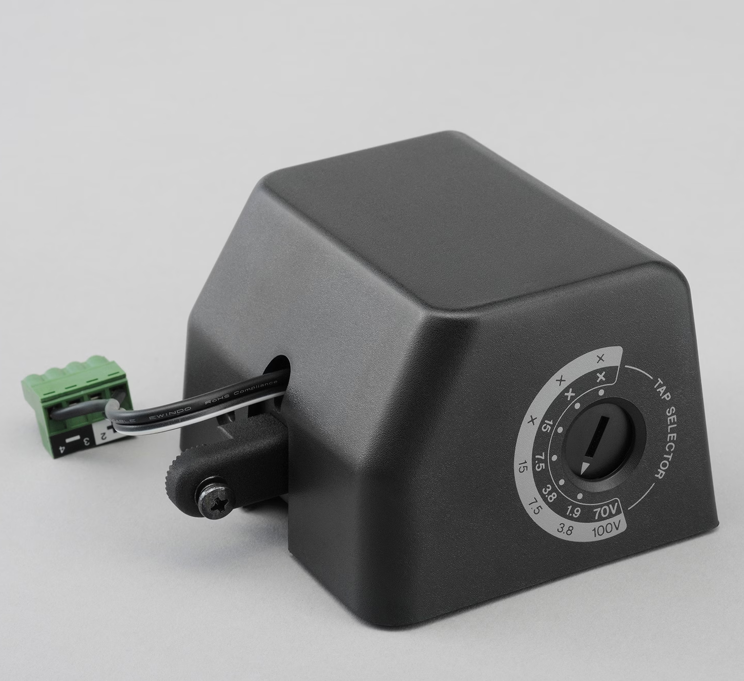 Tappings are available at 15, 7.5 and 3.8 watts and are selected via the rotary dial on the mounting bracket.