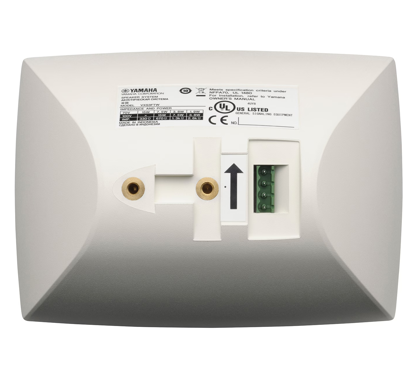The Yamaha VXS3FTW is stylish slim profile background music speaker rated at 15 watts, 100 volt line.