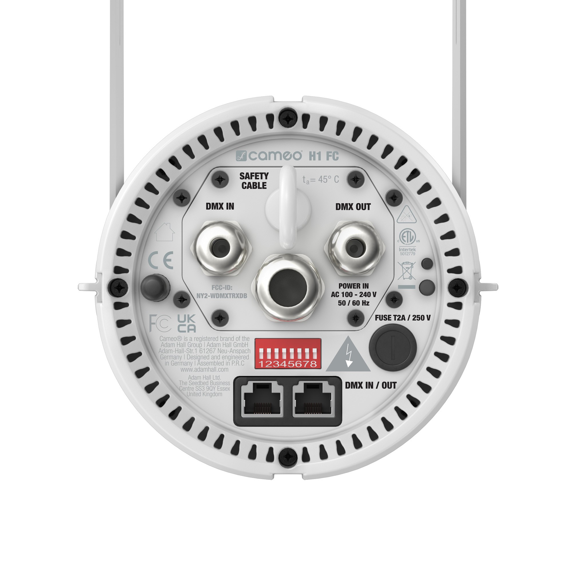 The Cameo H1 FC WH DMX controllable house light, in white, is fitted with a 120 watt RGBAL Full Colour COB LED with a total light output of 5200 Lumens. The beam angle can be varied between 30°, 42° and 54° through the use of the included filters.