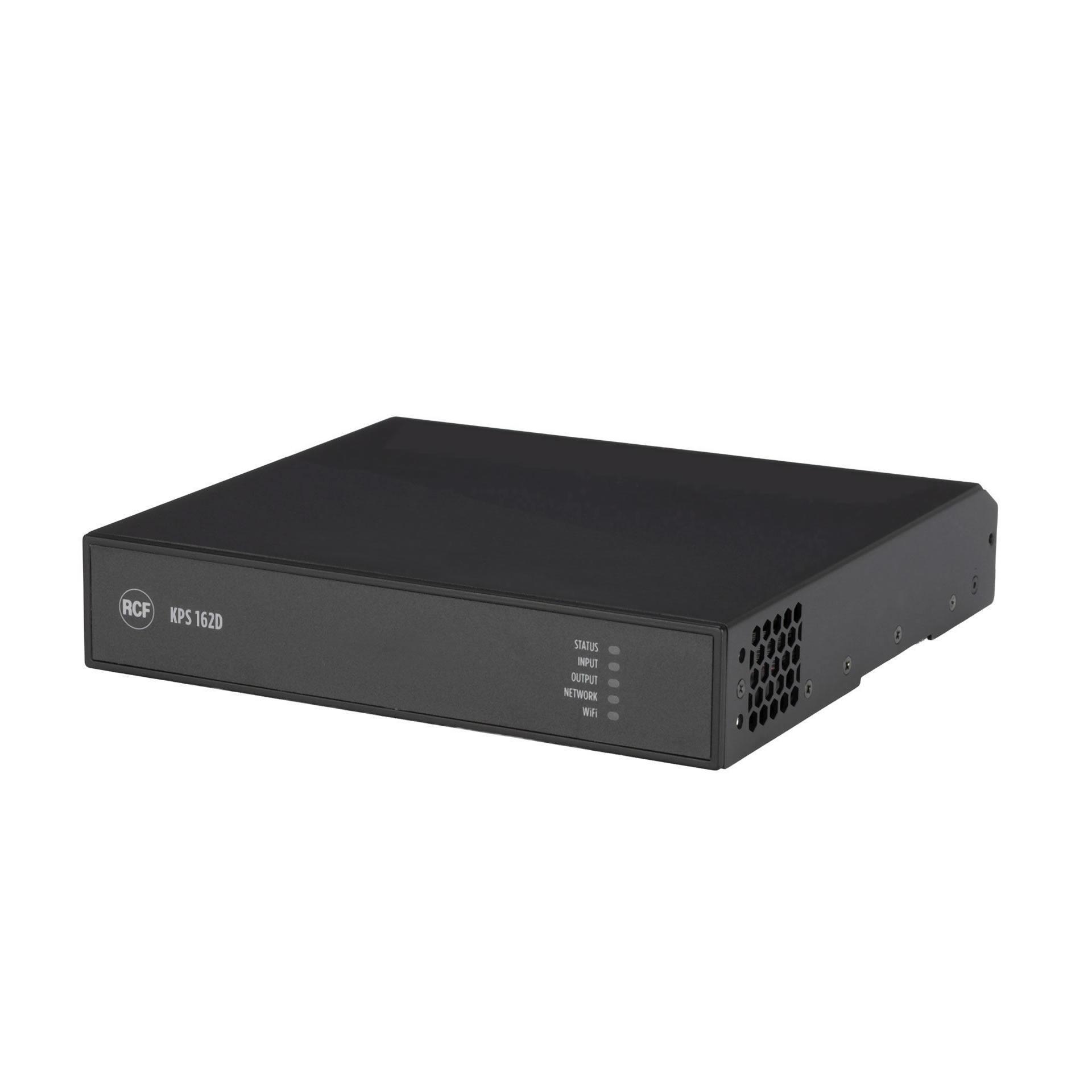 The RCF KPS 162D is a professional 2-channel power amplifier with DSP, equipped with Audinate Dante™ AoIP networks interface, allowing the distribution of 4 digital audio channels.