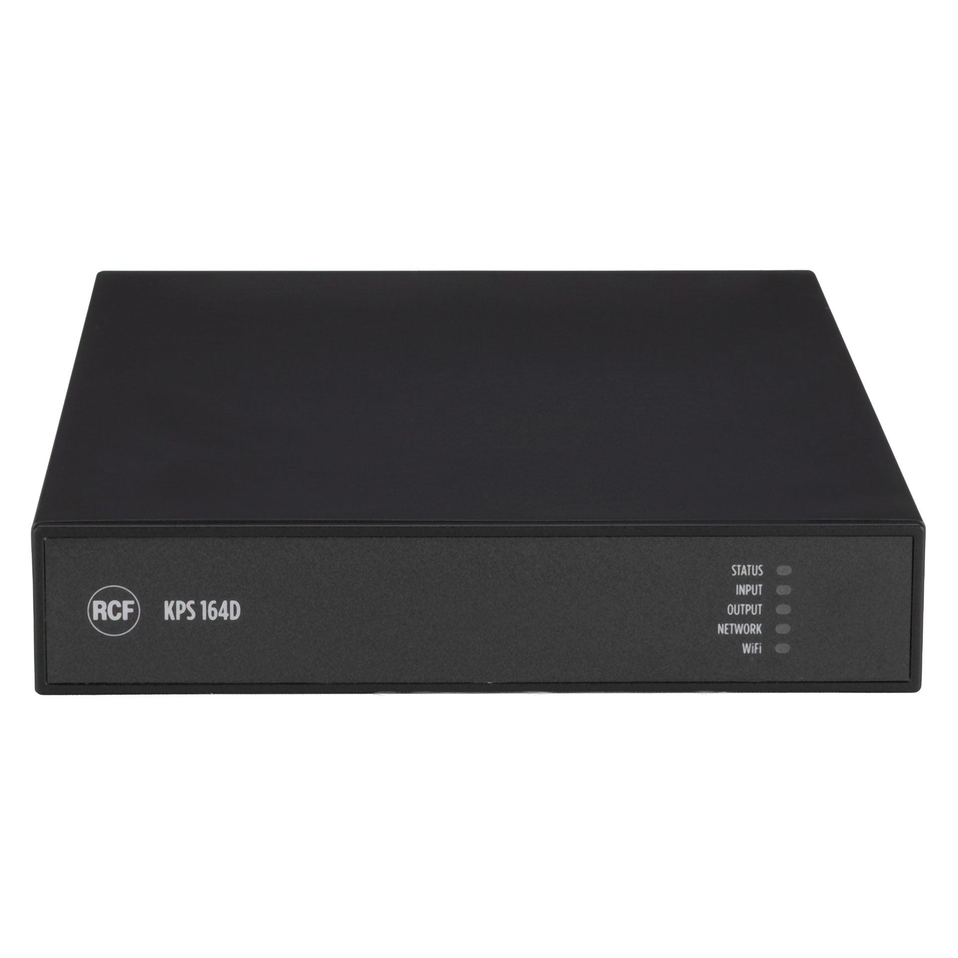 The RCF KPS 164D is a professional 4-channel power amplifier with DSP, equipped with Audinate Dante™ AoIP networks interface, allowing the distribution of 4 digital audio channels.