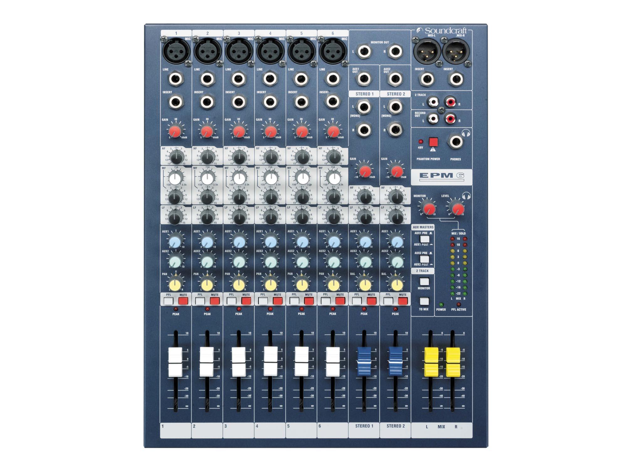 The Soundcraft EPM6 is a superb low cost audio mixer featuring 6 mono mic / line inputs and 2 stereo line input channels.