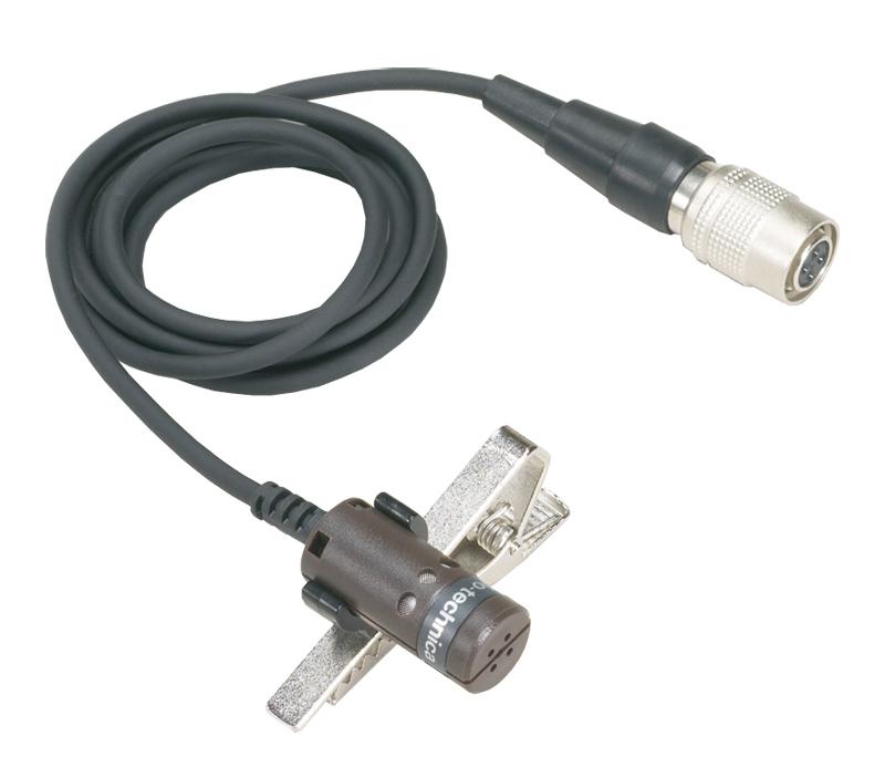 The Audio Technica AT829CW is a tie clip / lapel lavalier cardioid microphone suitable for use with the Audio Technica wireless beltpack transmitters.
