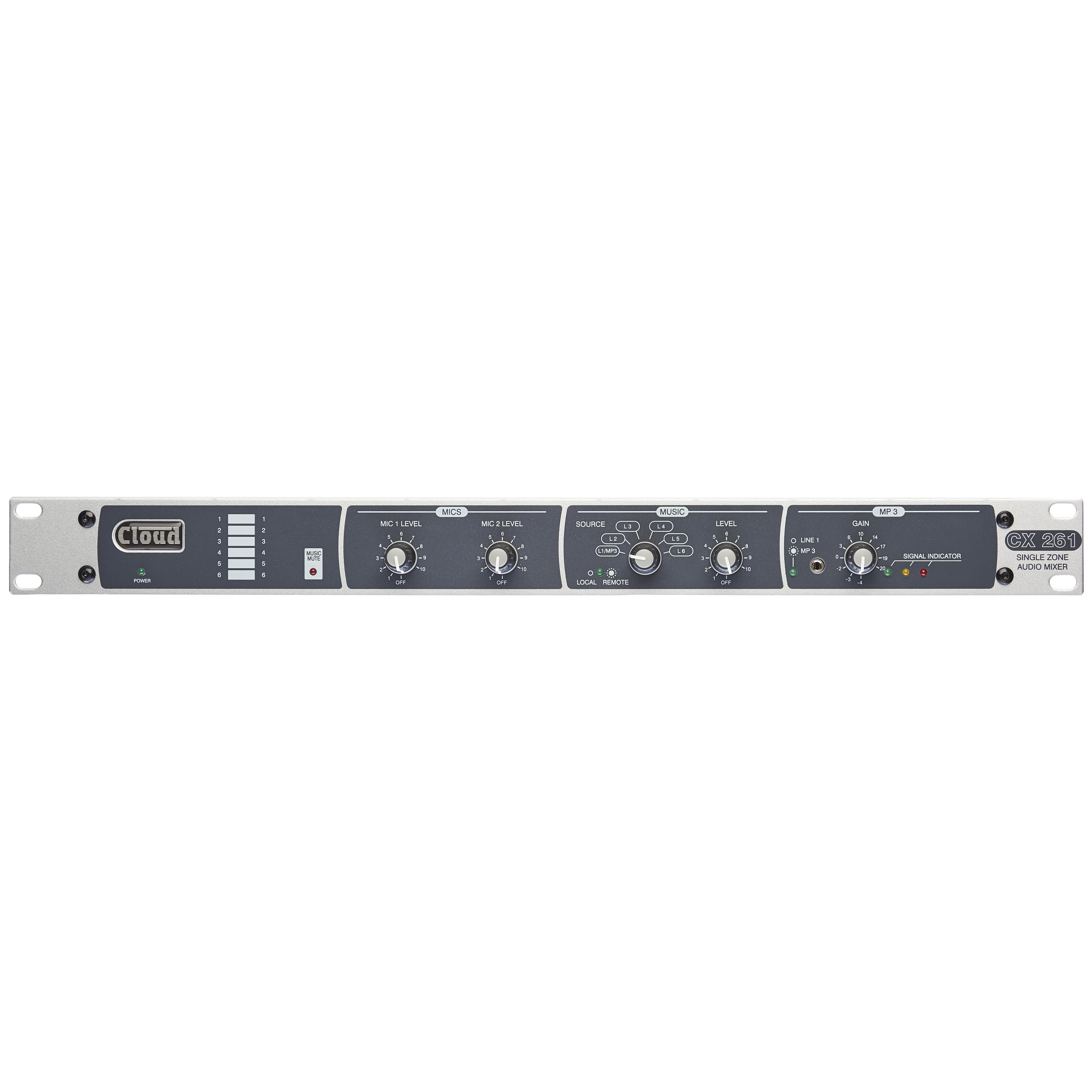 The Cloud Electronics CX261 single zone audio mixer has six line level inputs & 2 microphone inputs for simple control of high quality background music and a flexible range of paging options.
