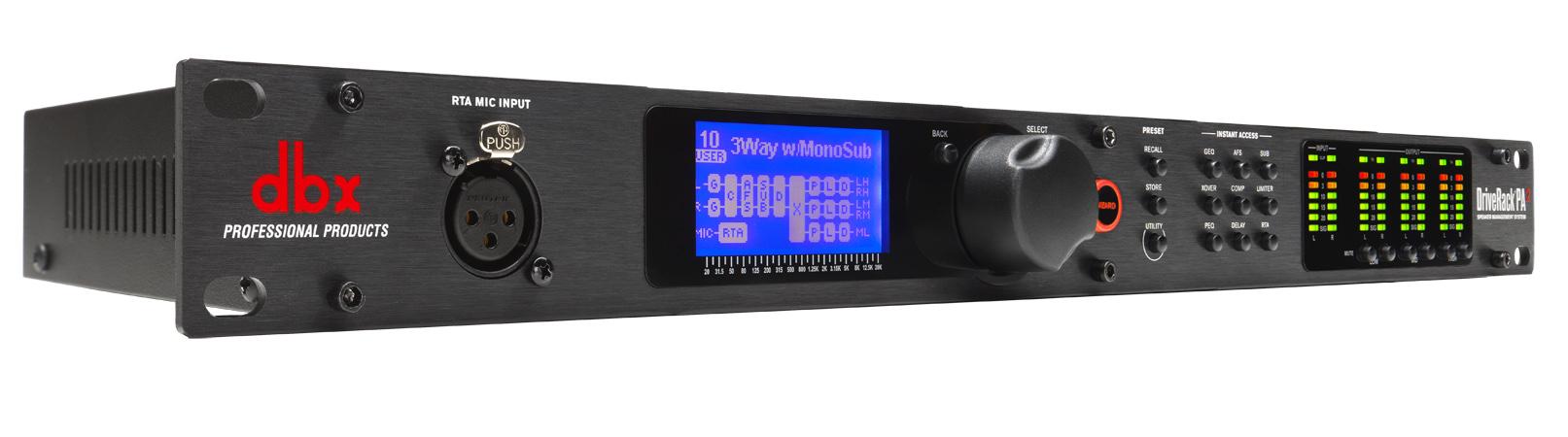 The DBX DriveRack® PA2 provides all the processing you need between your mixer and amplifiers to optimize and protect your loudspeakers. With the latest advancements in dbx’s proprietary AutoEQ™ and AFS™ algorithms, a new input delay module for delaying the FOH system to the backline, Ethernet control via an Android®, iOS®, Mac®, or Windows® device, and updated Wizards, the DriveRack PA2 continues the DriveRack legacy of great-sounding, powerful, and affordable loudspeaker management processors, for a whole new generation.