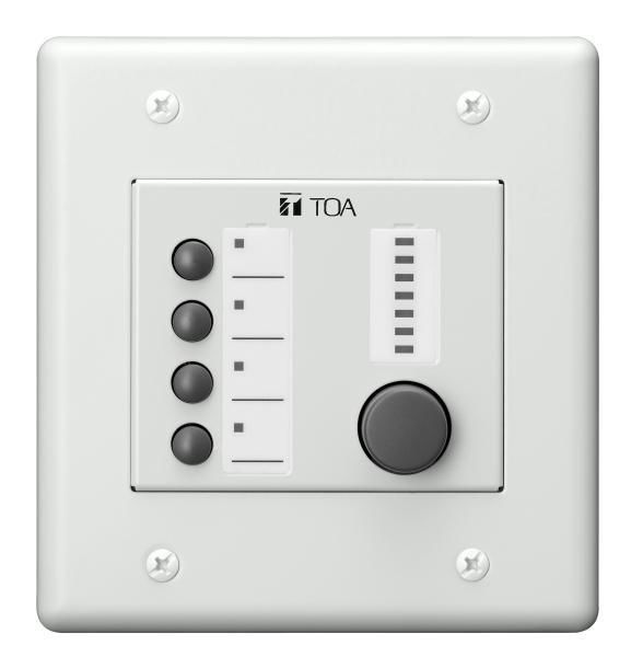 The TOA ZM-9014 is a remote control panel for the M-9000M2 with 4 programmable buttons and 1 volume control knob.