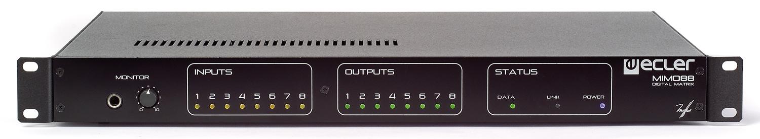The Ecler MIMO 88 is an 8 in, 8 out digital audio matrix mixer, fully programmable with a second MIMO88 to become a 16 x 16 matrix offering any input to any output.