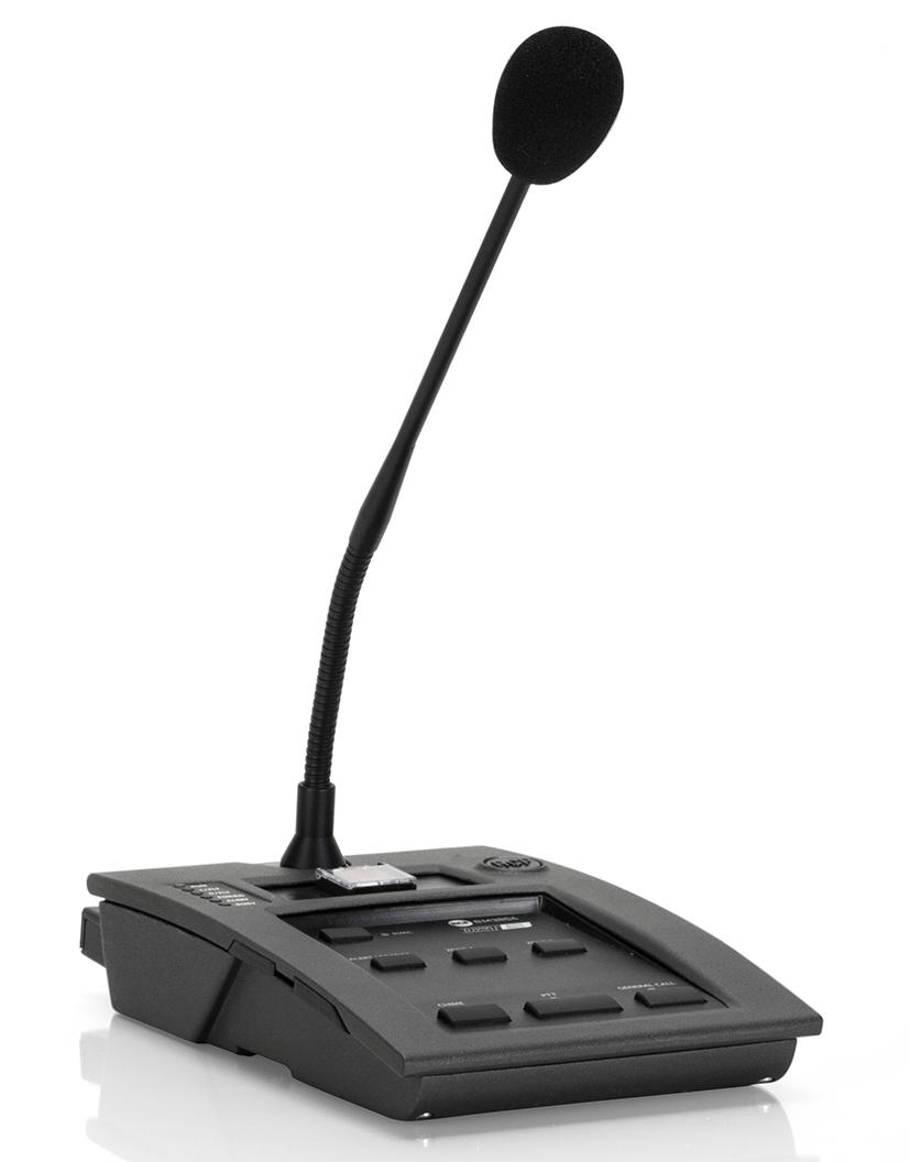 The RCF BM 3804 is a monitored and pre-ampified desktop paging microphone for use with the RCF DXT 3000 emergency evacuation system. Fully compliant with EN-54.