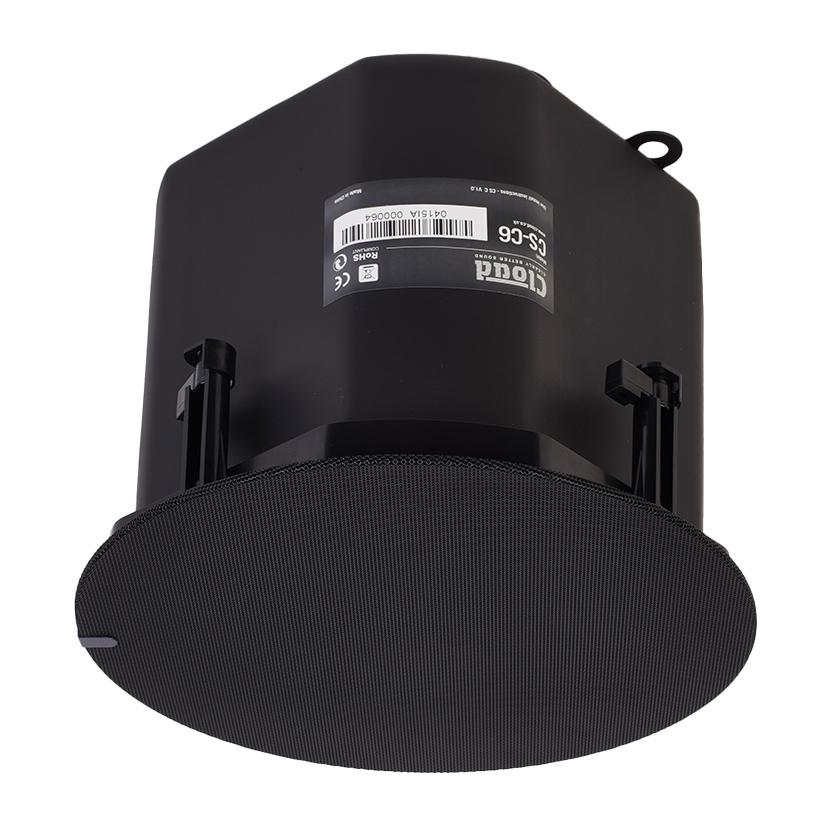 The Cloud Electronics CS-C6B 6.5" 2 way flush mount ceiling speaker is rated at 32 watts /100 volt line or 50 watts / 16 ohms. Finished in black, the Cloud CS-C6 is one of our favourite products.