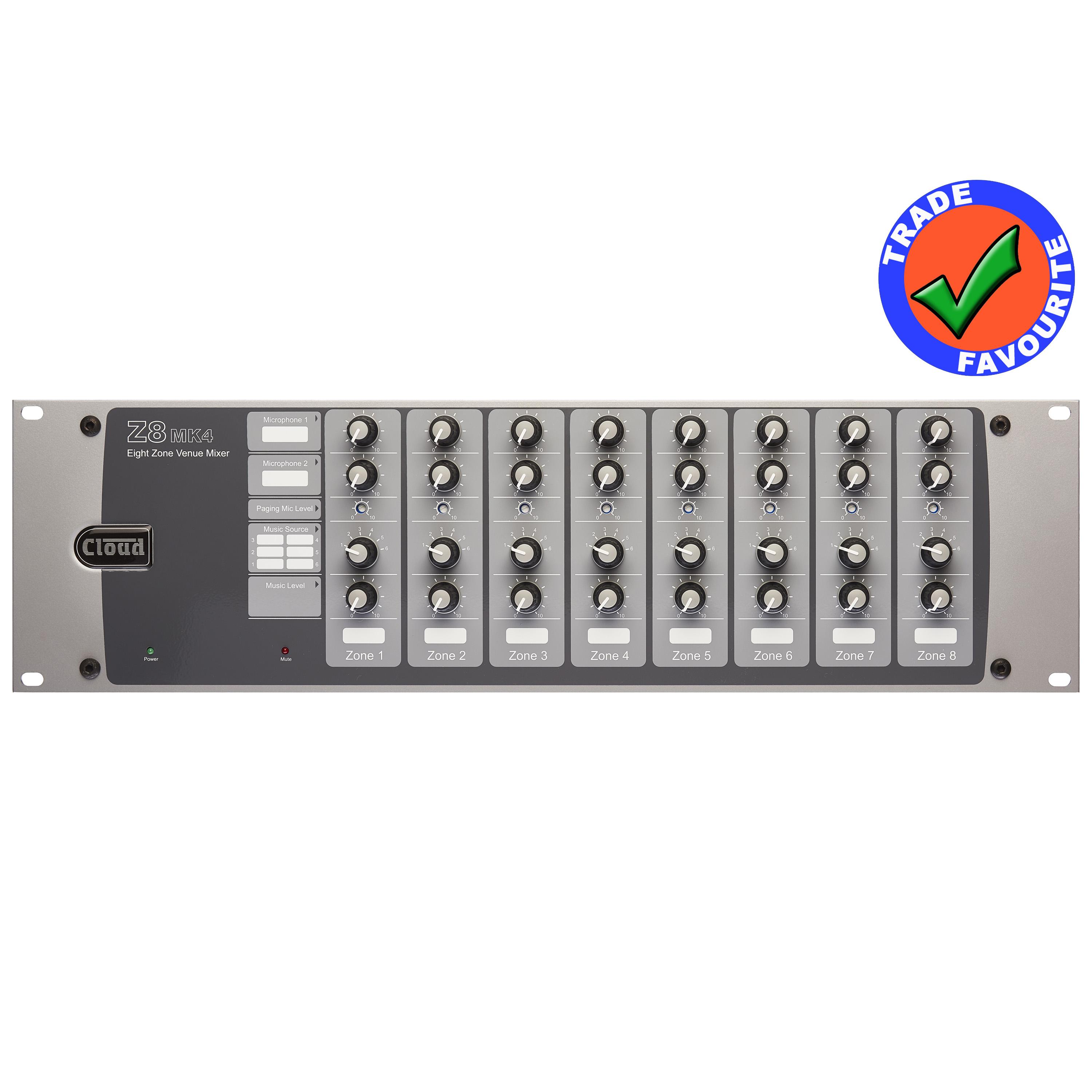The Cloud Z4MK4 is the ideal multi-zone, multi function zoned audio mixer for your venue offering a user friendly master control for the complete sound system.