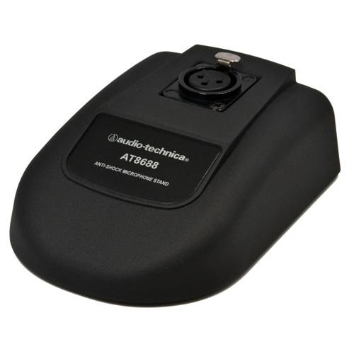 The Audio Technica AT86188 anti-shock microphone desk stand is a low profile heavy desktop microphone base with XLRF input and XLRM output.