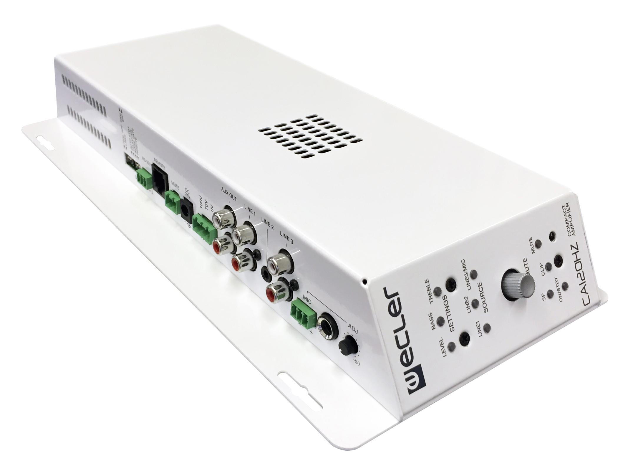 The Ecler CA120HZ micro amplifier is the high impedance version of the CA120, offering 120 watts output @ 70 / 100 volt line. Great for long loudspeaker cable runs or for increased numbers of loudspeakers that a low impedance amplier could cope with. Offers an RS232 port, 0-10 VDC remote port and infra red remote for volume adjustment.