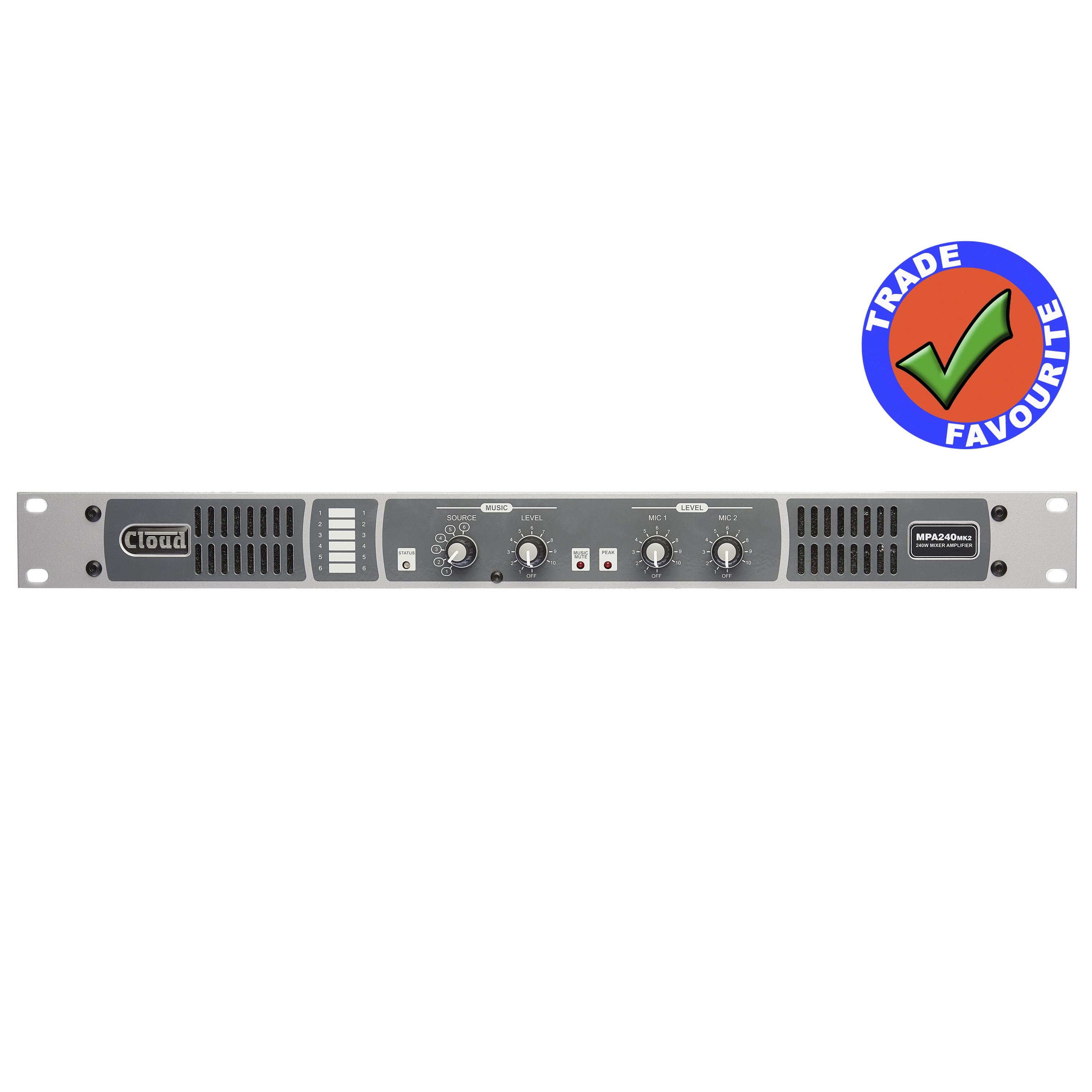 The Cloud Electronics MPA240mk2 240 watt mixer amp, one of our favourite products, offers mixed impedance outputs on 4 & 8 ohms as well as 70V &100 volt line.